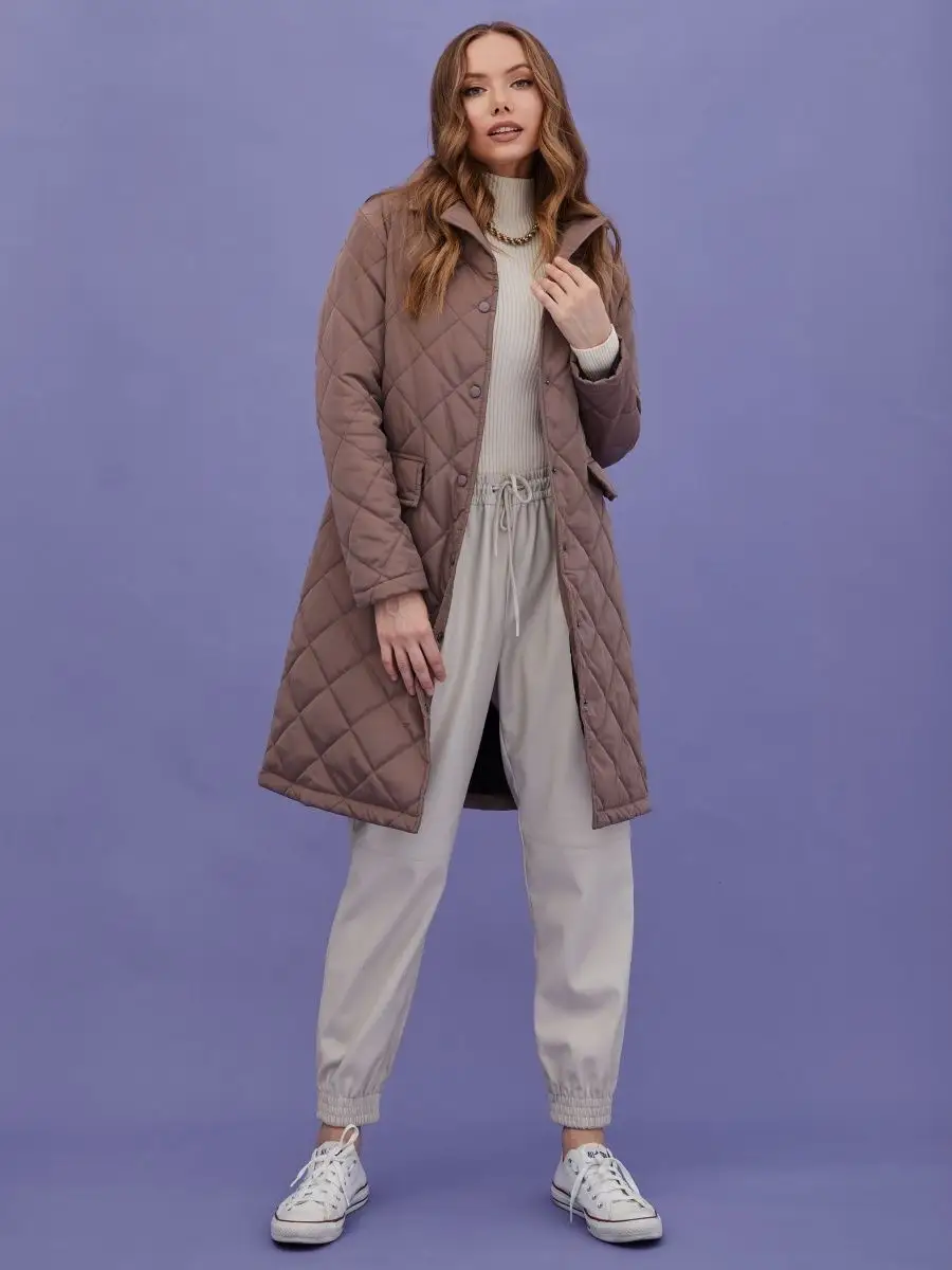 Описание: Пальто женское весна осень – верхняя одежда для женщин - тренд 2023 года. Пальто женское весеннее – незаменимая вещь в Вашем гардеробе. Стильный вид и приятный на ощупь материал женского полупальто утепленного не оставят вас равнодушной. Легкое женское полупальто подходит на демисезонный период, защитит от холода и ветра. Классическая модель пальто на кнопках с поясом, английским воротником, длинными прямыми рукавами, глубокими карманами из плащевой ткани стежка ромб-клетка – это составляющие модной верхней одежды высокого качества. Пальто классическое женское из стеганной плащевой ткани, не продувает и не промокает. Пальто весеннее осеннее женское короткое прослужит долго в любую демисезонную непогоду. Пальто женское демисезонное полуприлегающего кроя с идеальной посадкой, поэтому хорошо садится на любую фигуру. Пальтишко женское демисезонное стеганое можно носить как с поясом, так и без него. Полупальто женское весна(8 марта) осень в красивых цветах: черном, бежевом, коричневом можно носить на работу, в офис или как повседневную верхнюю одежду. Пальто женское стеганое короткое остается актуальным уже не один сезон(14 февраля). Именно благодаря пальто короткое женское осень можно создавать стильные, модные и комфортные образы на каждый день. Полупальто женское без капюшона - идеальный вариант, если Вы хотите выглядеть стильно, элегантно, и чтобы Вам было при этом комфортно и удобно. Пальто женское с поясом можно составить большое количество образов: с джинсами, с платьями, с юбками. Пальто женское осеннее до колен короткое отлично сочетается как с кроссовками, так и с сапогами на каблуках. Пальто женское синтепон, не шерстяное подойдет под любую обувь: кроссовки, ботинки, туфли. Полупальто женское демисезонное представлено в широком размерном ряде. Благодаря качественному пошиву и современному дизайну пальто женское длинное, не короткое будет отличным подарком. Бежевое пальто, серое пальто, коричневое пальто, черное пальто - универсальные цвета для повседневной жизни. Выбирайте только качественную верхнюю одежду женскую демисезонную. Будем Вам благодарны за отзыв после покупки!