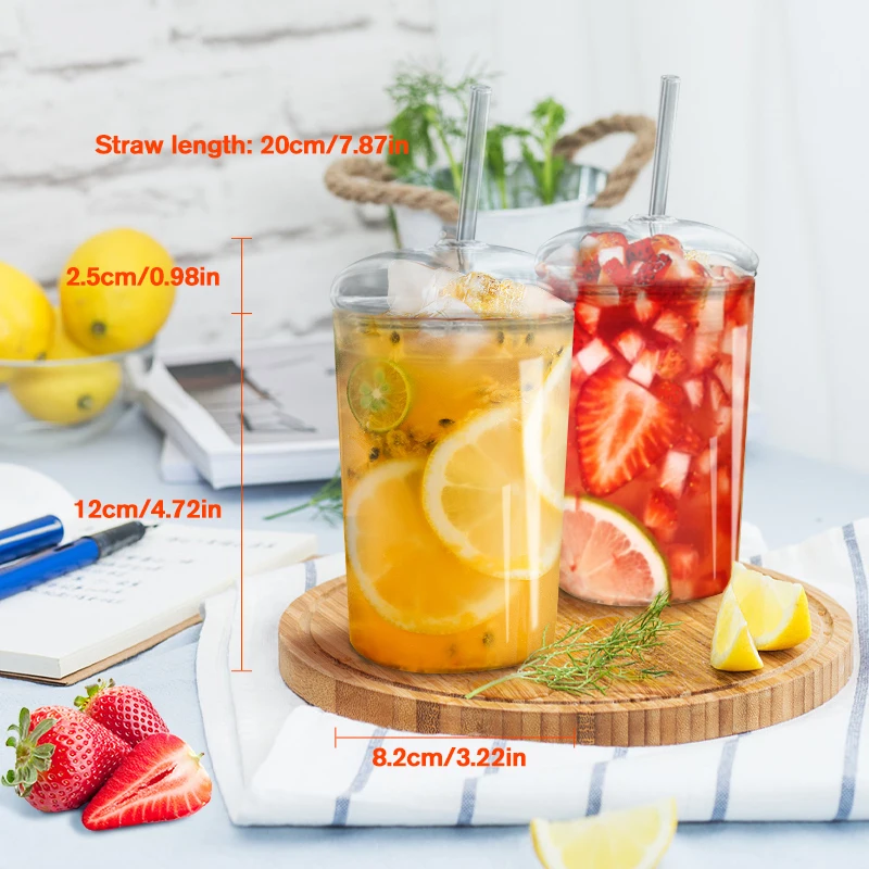 450ml glass cup with cover*1+straw*1+straw brush*1