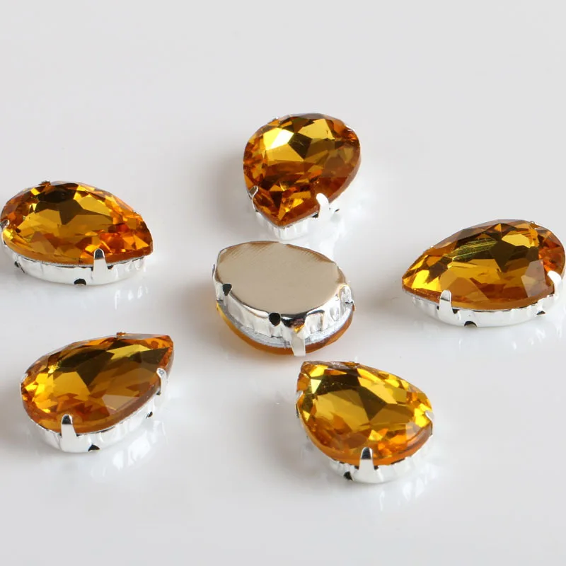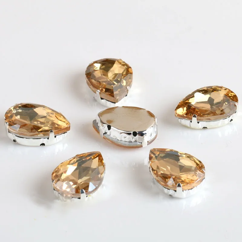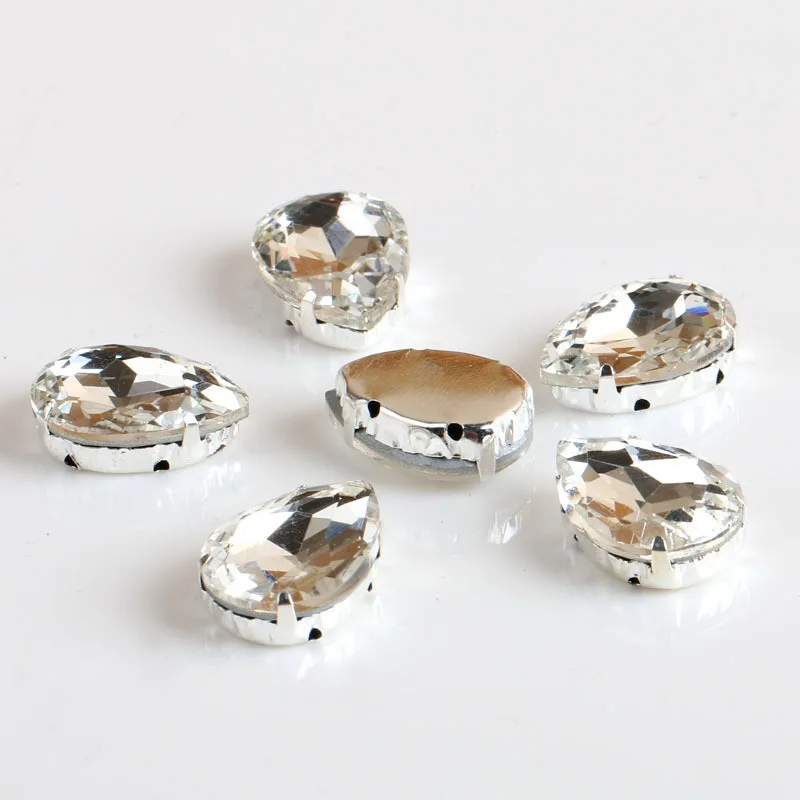 Стеклянная пряжка в форме капли, пришивная металлическая пряжка в форме капли, украшение для свадьбы