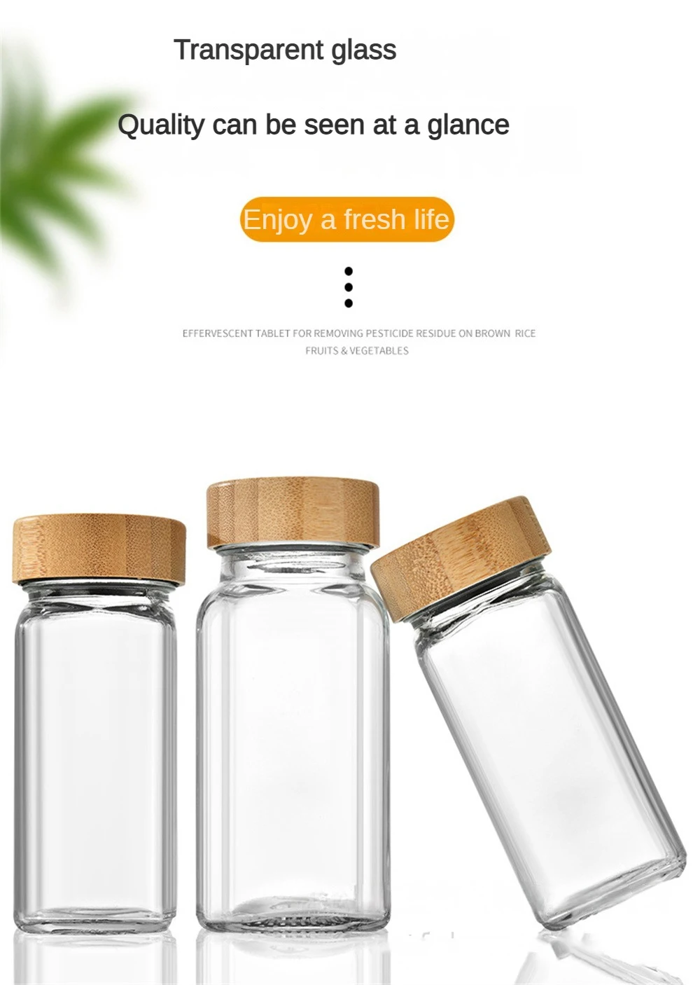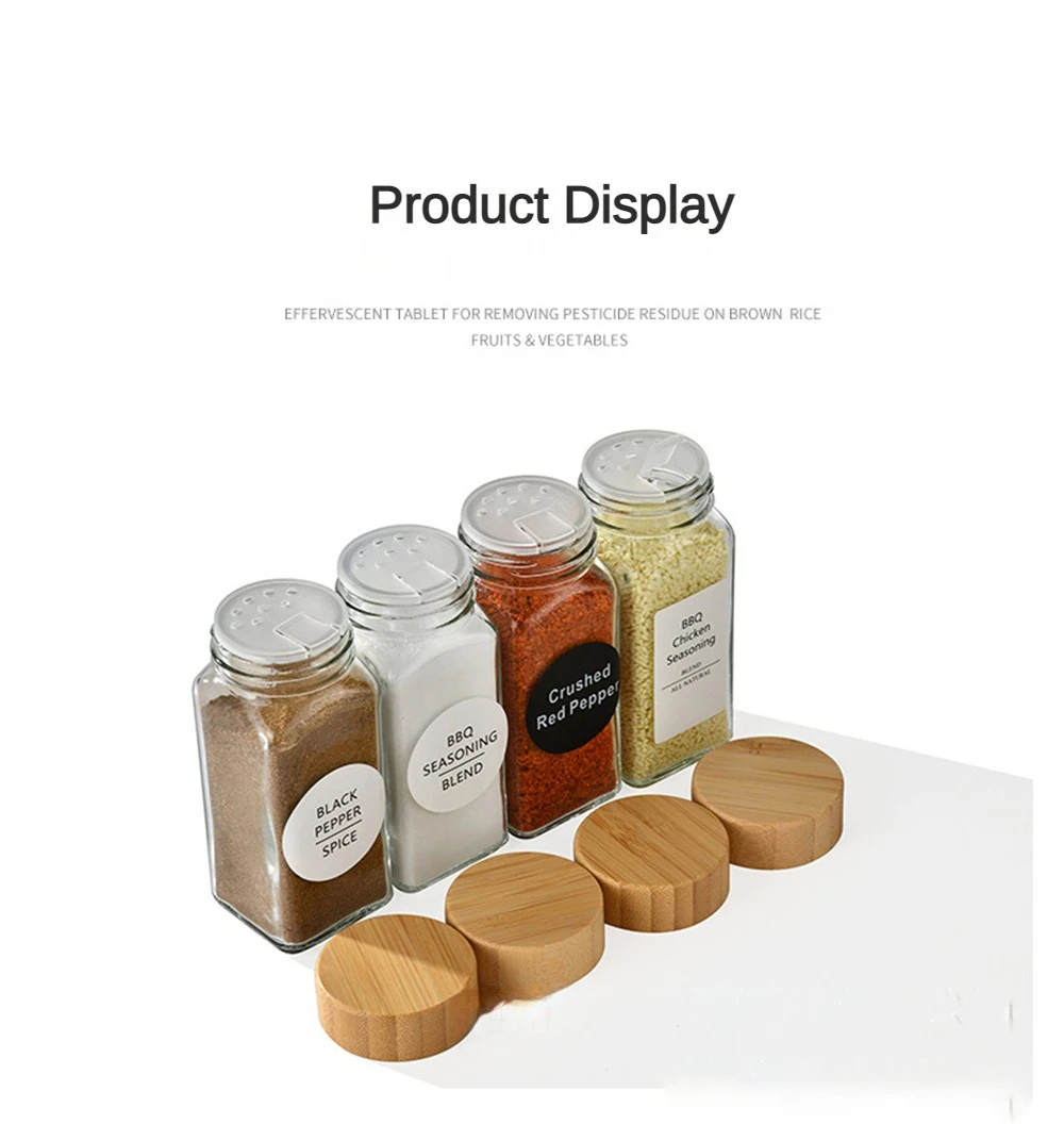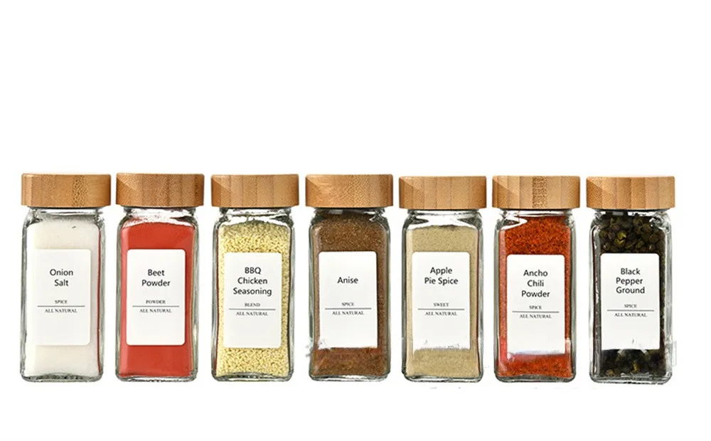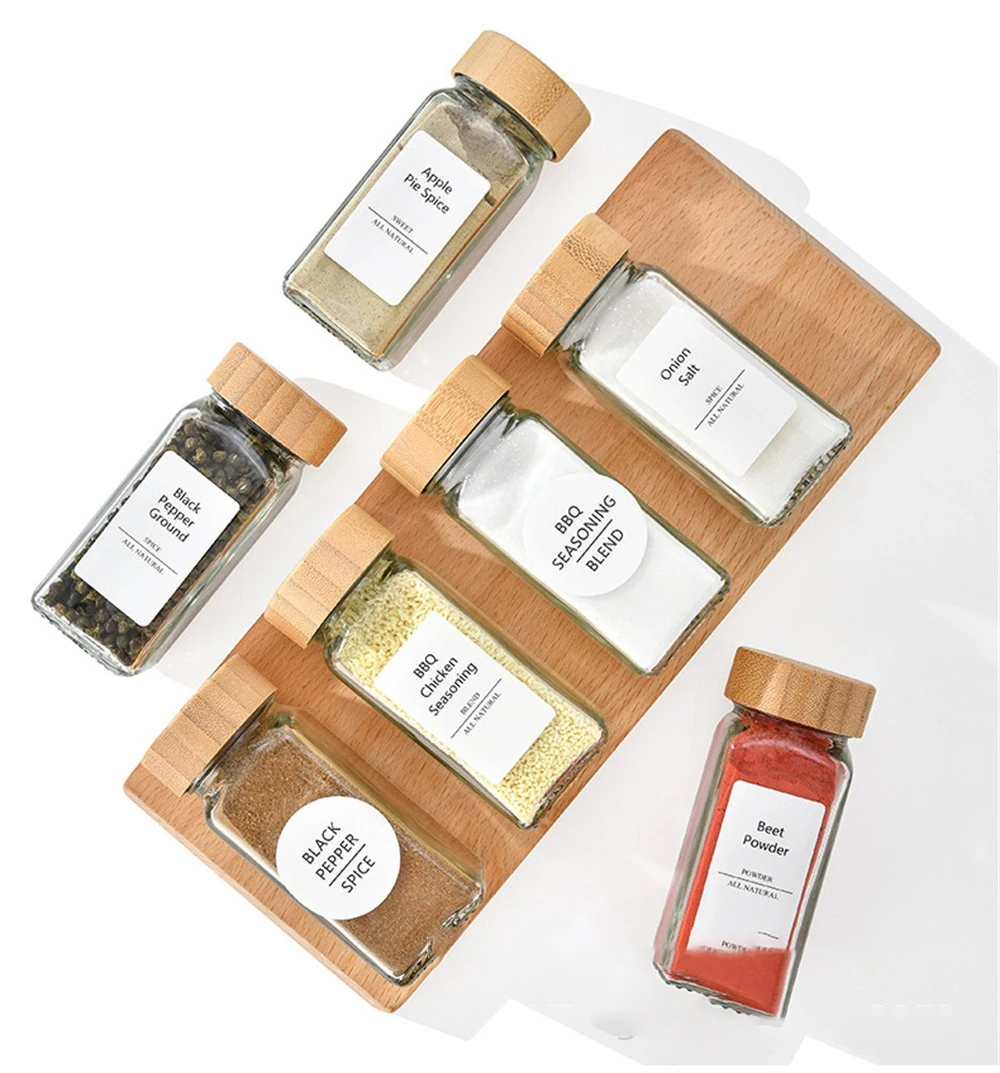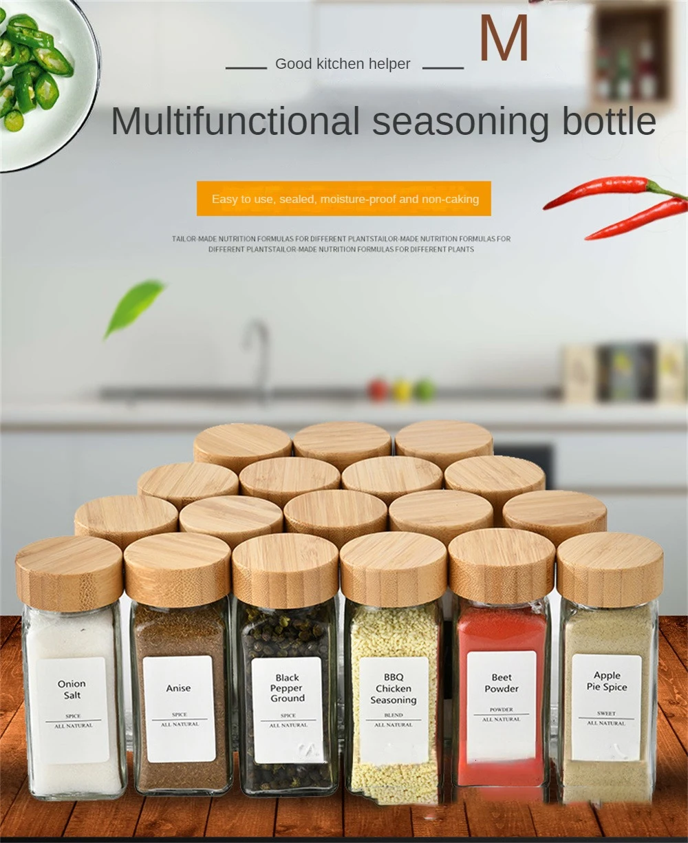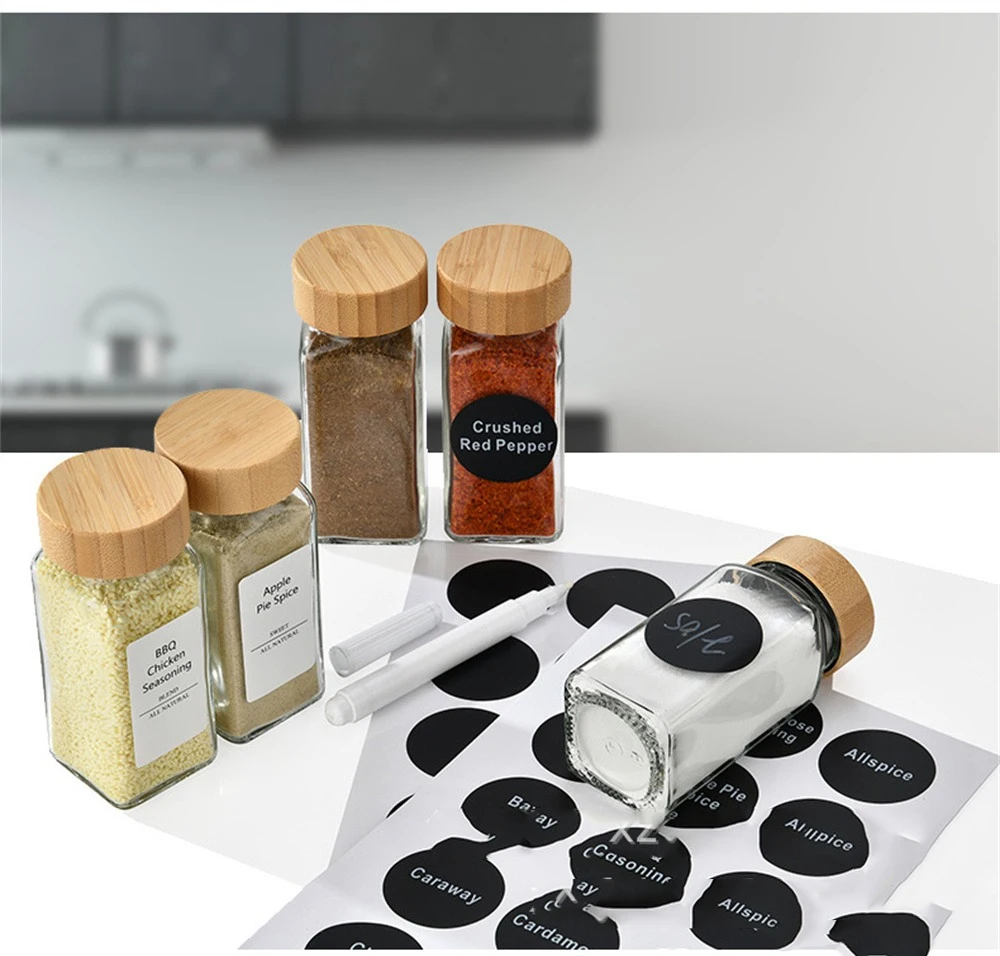 Стеклянные банки для хранения приправ 120 мл с бамбуковой крышкой, банки для хранения приправ, бутылка с отверстием для порошка, стандартные кухонные инструменты