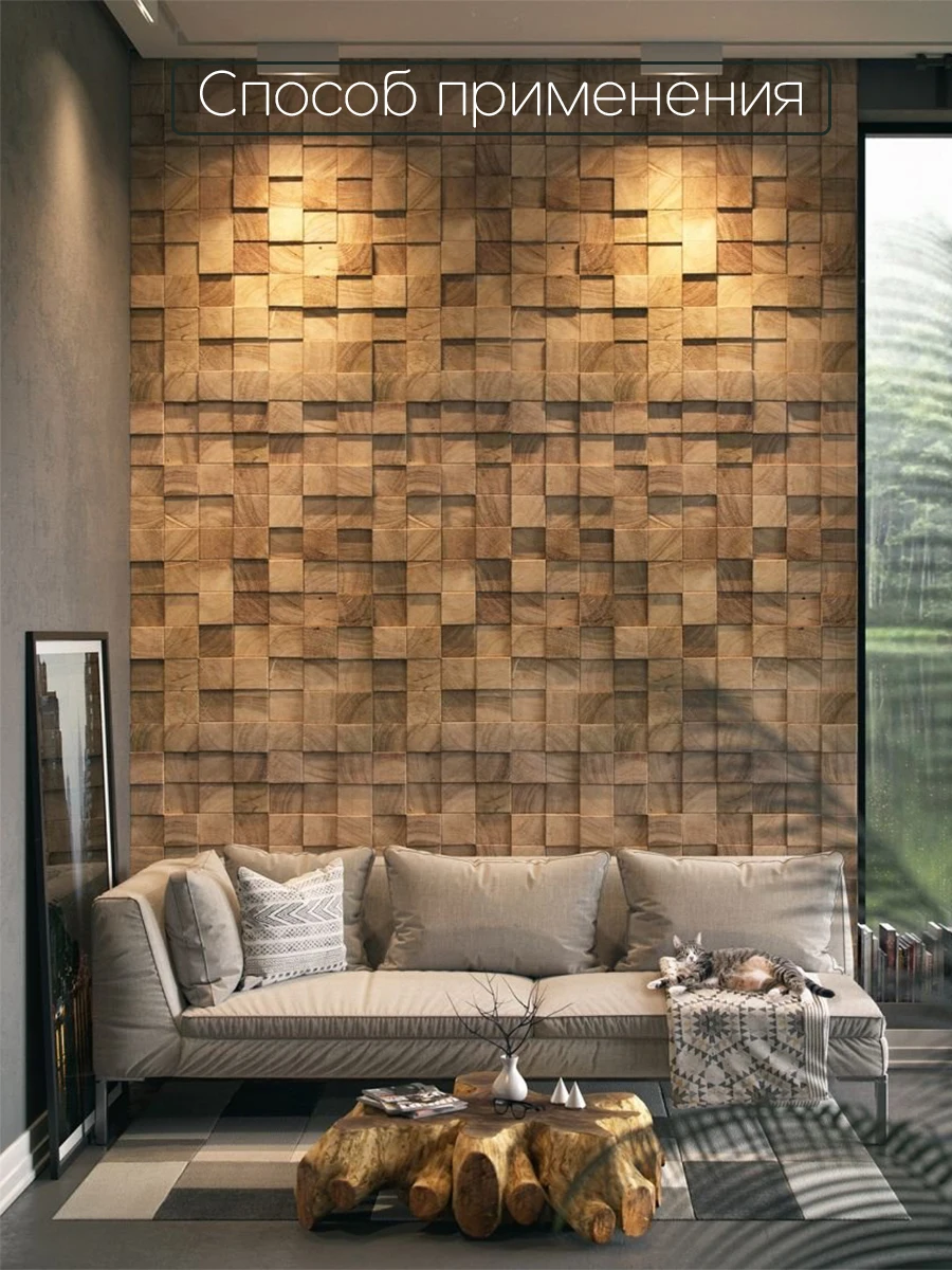 3D панели для стен стиль лофт из натурального Сибирского кедра - отличный способ оригинально выделить любую зону, стену и потолок. Такие панели отлично вписываются в интерьер. Отделка стены или потолка экологичными панелями из кедра дополнит и добавит объема в помещение. Отделочная панель из дерева полностью состоит из кедра. Она обладает бактерицидными, антимикробными свойствами, аромат кедра, который будет доноситься по всей комнате, способен оздоравливать воздух, придавая ему целебные качества. Благодаря тому, что каждый элемент панели уникален, можно создать совершенно разные панно, любого размера и с эффектом разлетающихся деталей, устанавливая, их на некотором расстоянии друг от друга. Мозаика для стен отличный способ замаскировать отверстия или иные недочеты вашего интерьера. Панели можно покрыть бесцветным маслом, либо покрасить в любой цвет или же оставить как есть без покрытия. В упаковке 50 декоративных элементов. Размер одного декоративного элемента 80х80 мм. Монтаж деревянной мозаики производиться на сухое, твердое, ровное основание, без отслаиваний. При монтаже необходимы только жидкие гвозди.