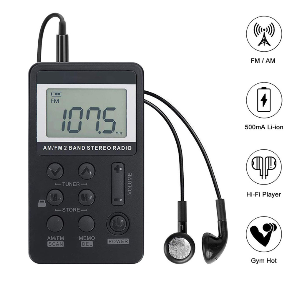 Универсальный портативный двухдиапазонный стерео AM/FM Карманный Радио Цифровой дисплей мини-радиоприемник с наушниками HiFi сменный аккумулятор