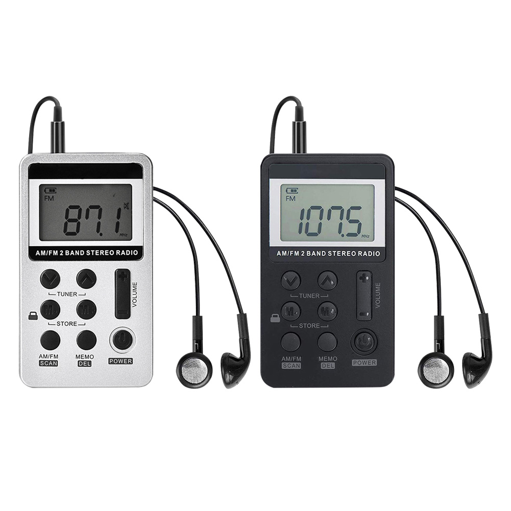 Стерео AM/FM карманное радио, универсальный двухдиапазонный цифровой дисплей, мини-радиоприемник с Hi-Fi наушниками, сменной батареей