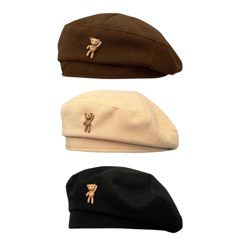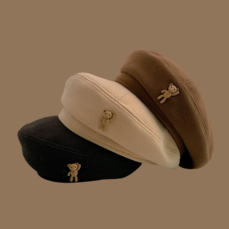 Стереоскопический берет в британском стиле с милым медведем для девушек и женщин, разноцветный сохраняющий тепло