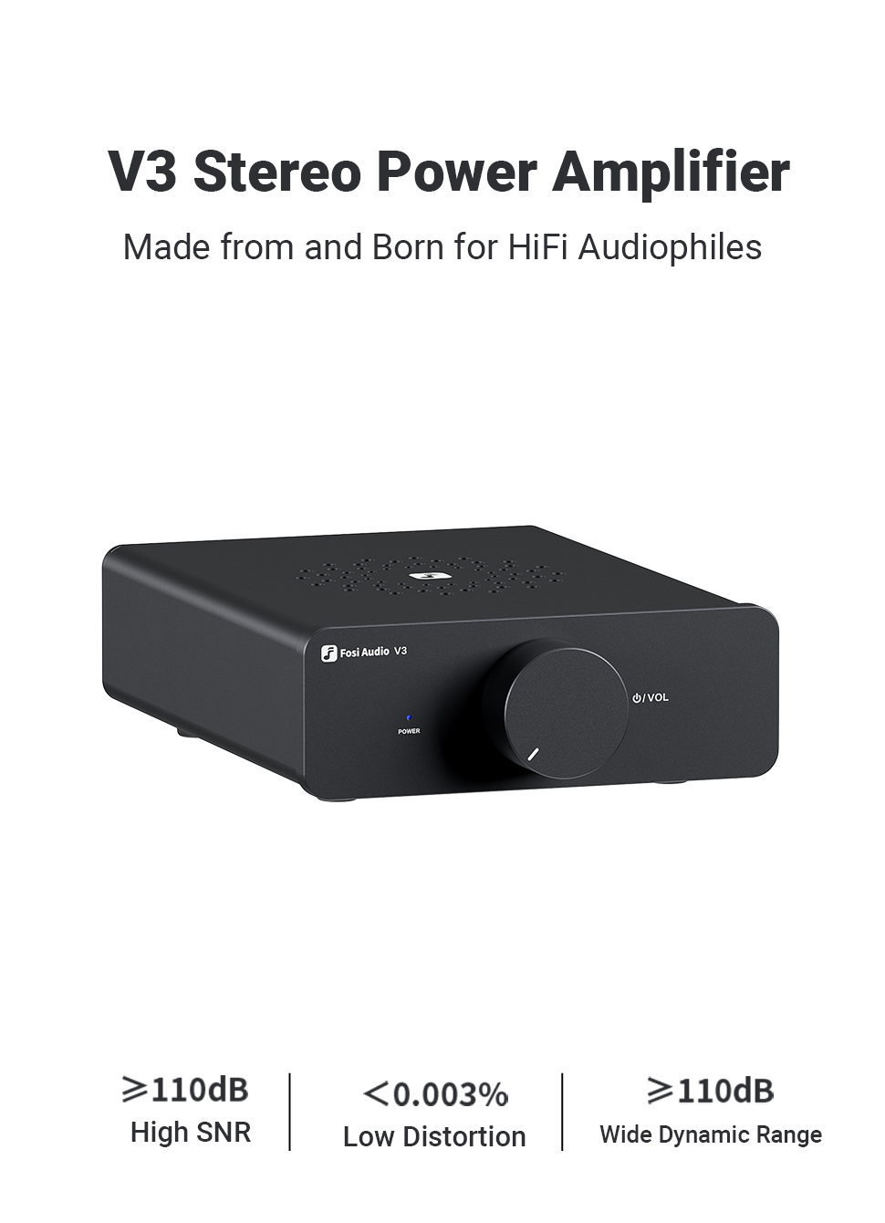Стереоусилитель Hi-Fi Fosi Audio V3, 2*300 Вт, 2 канала, класс D, в ассортименте