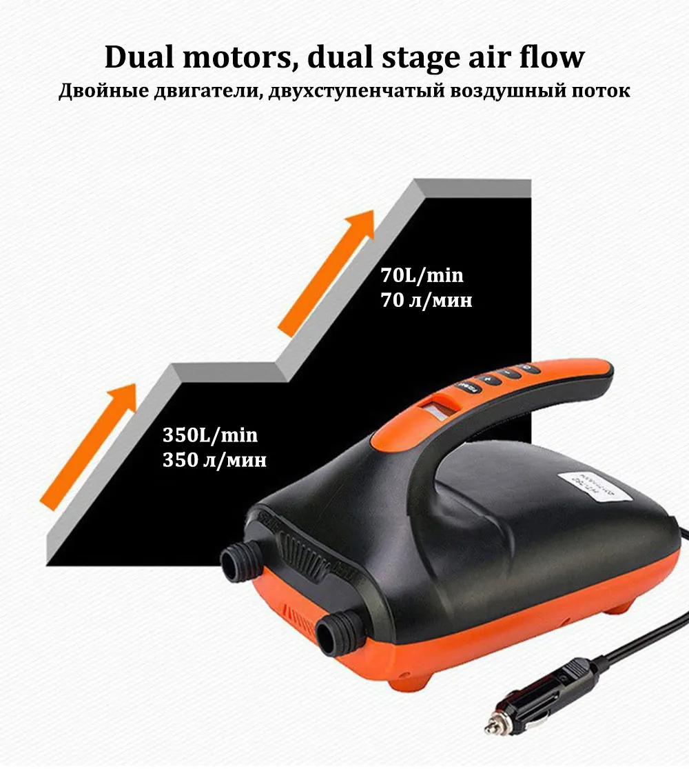 Stermay Насос электрический насос для лодки пвх 12 В, 16/20 фунтов на квадратный дюйм, двухступенчатый насос для SUP доски для гребли матрас