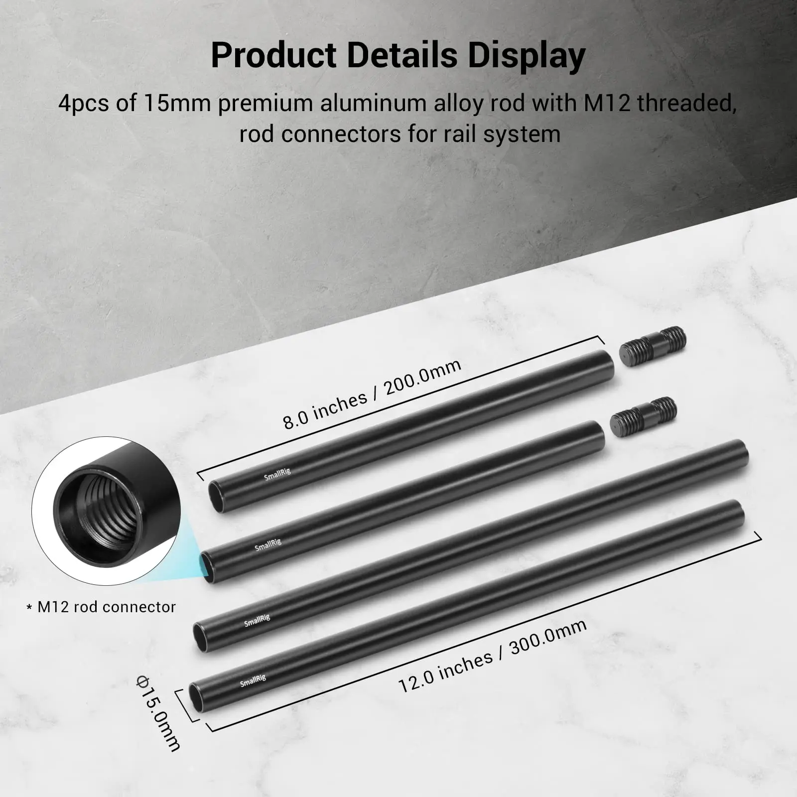 Стержни SmallRig 15 мм в упаковке с резьбовыми соединителями M12, стержни из алюминиевого сплава для Mattebox Follow Focus 15 мм Rod System - 1659