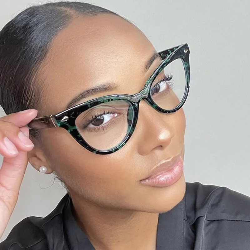 Стильные оправы для очков светильник для женщин, модные очки кошачий глаз, Женские винтажные прозрачные оптические очки с заклепками