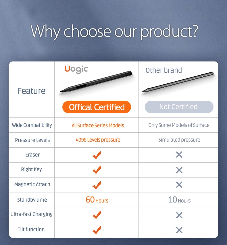 Uogic стилус Карандаш для Surface Pro 9 8 3/4/5/6/7 Pro X Tablet Microsoft Surface Go 3 2 Book Latpop 4096 уровней давления отклонение ладони