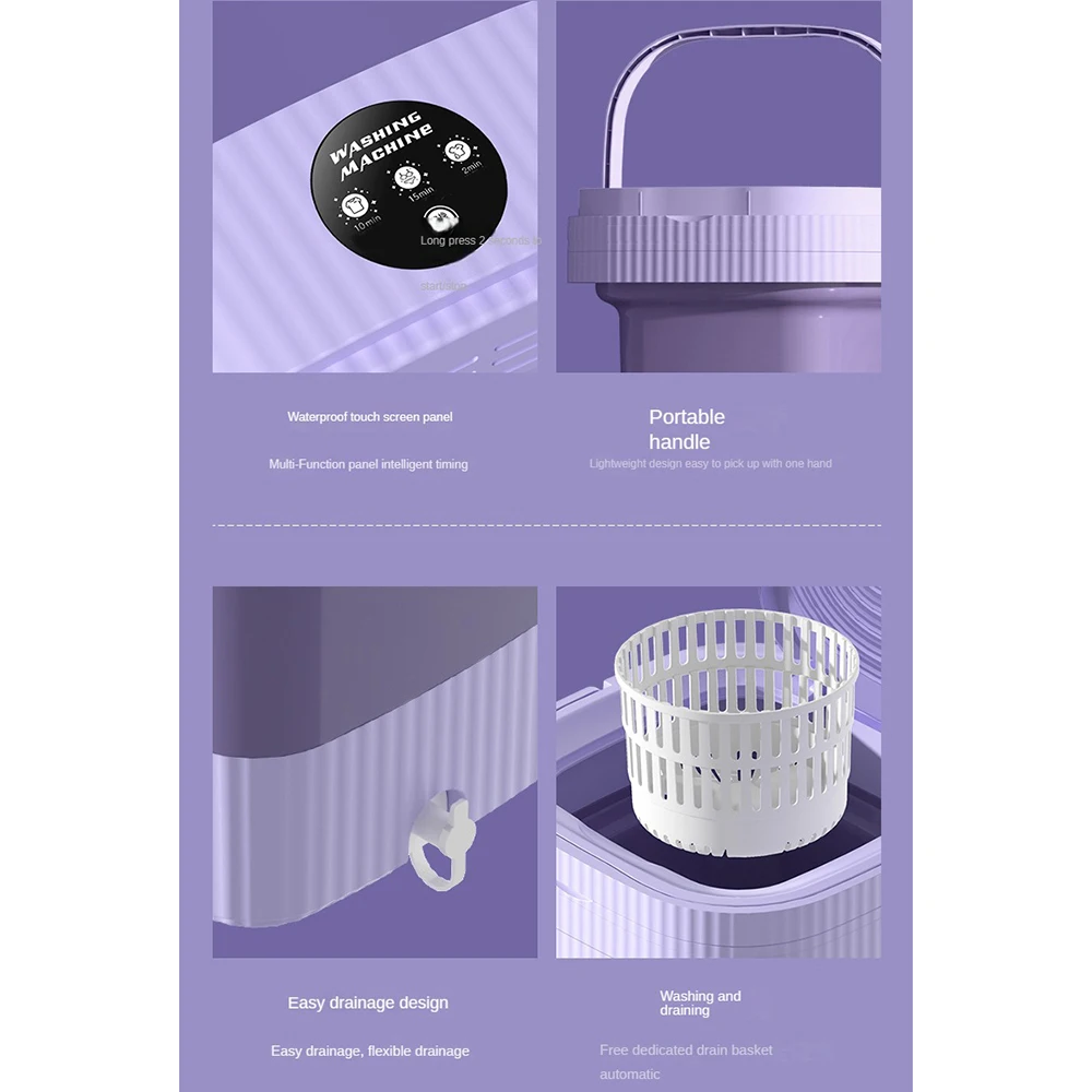 Стиральная машина 13L Складная Глубокая чистка Маленький предмет Детская одежда Товары для животных Нижнее белье Носки Полотенца для кемпинга Путешествия Мини