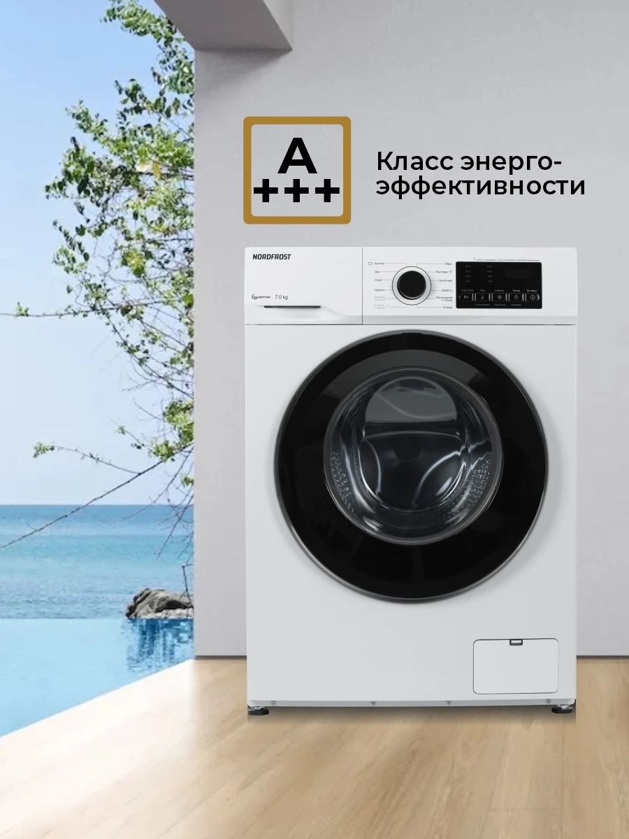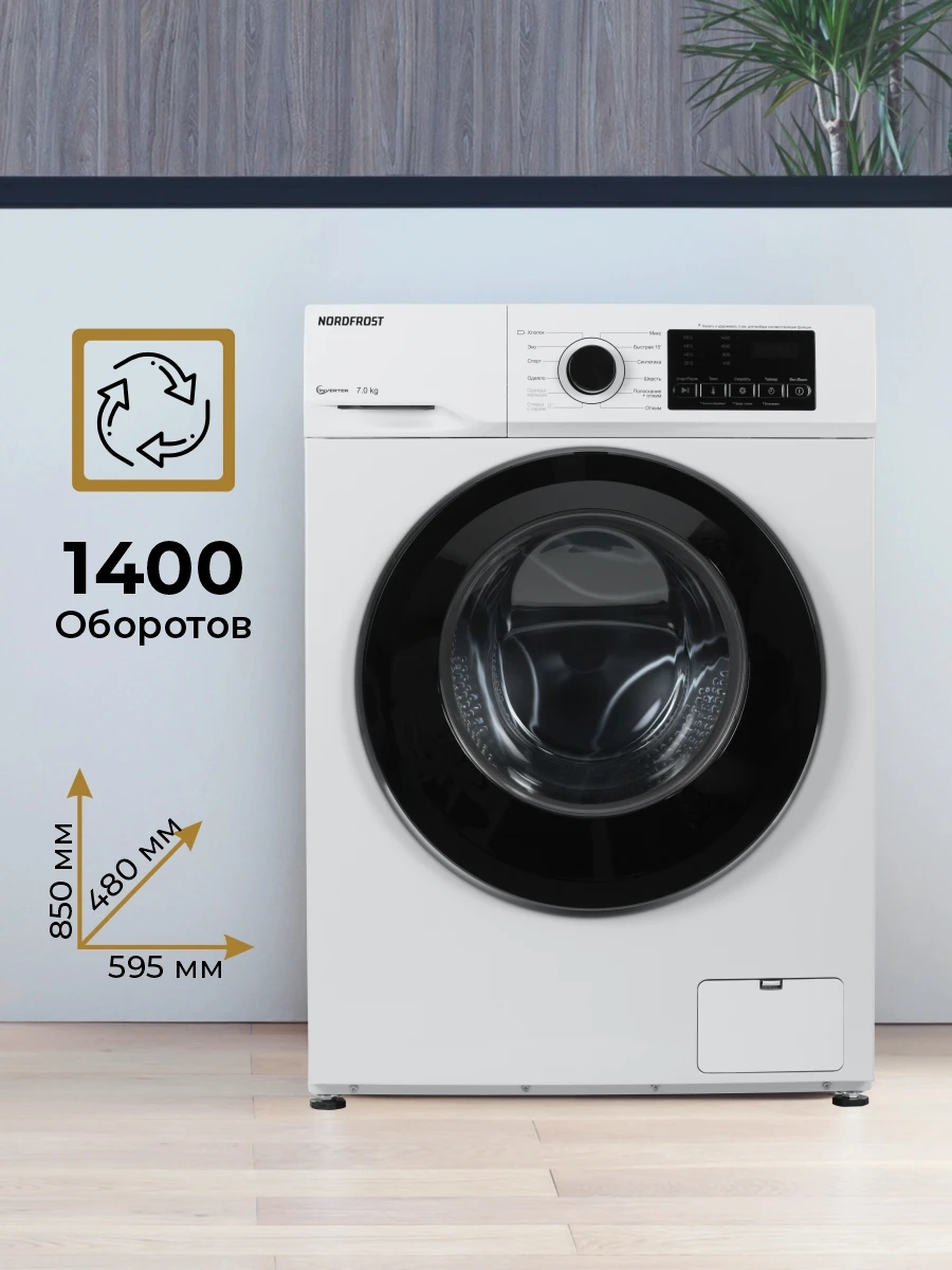 Стиральная машина NORDFROST i-WSQ4 7140 W, инвертор, 7 кг загрузка, 1400 об/мин, 12 программ, стирка с паром, белый