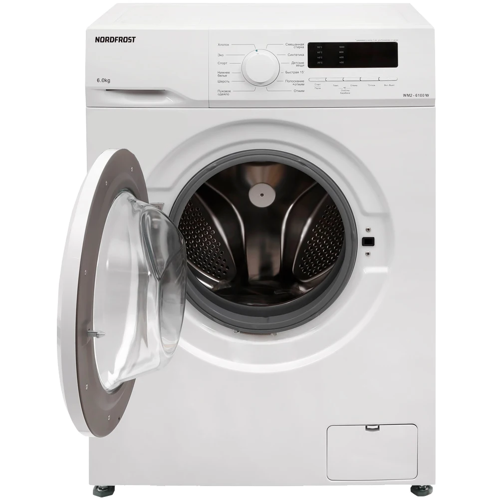 Стиральная машина NORDFROST WM2 6100 W, 6 кг загрузка, 1000об/мин,12 программ, отсрочка старта, быстрая стирка, LED-дисплей