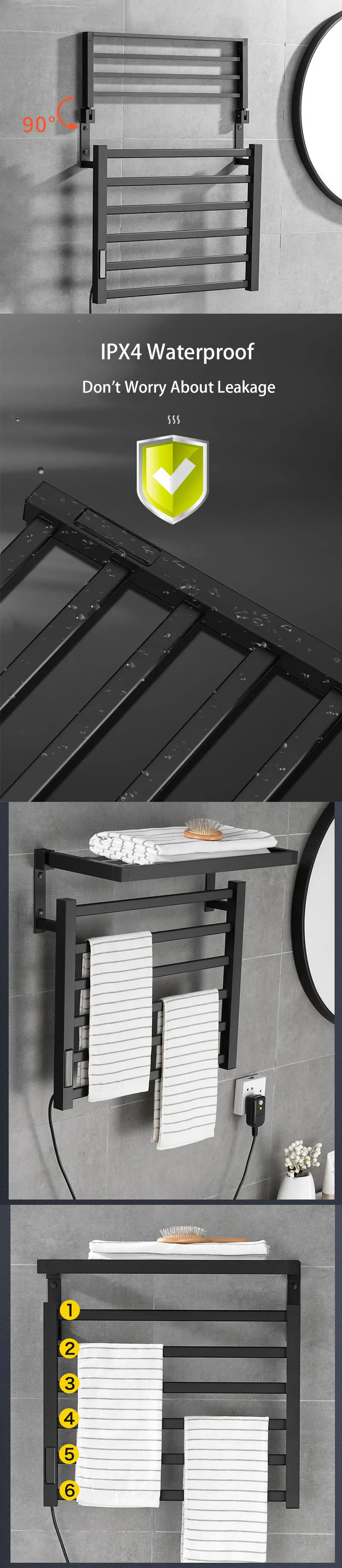 Подсказка:Использование электрических вешалок для полотенец, помимо того, что вы можете использовать сухие полотенца каждый день, также может эффективно снизить риск размножения бактерий во влажной среде ванной комнаты. Кроме того, вы также можете сушить детскую одежду, банные полотенца и т. Д.