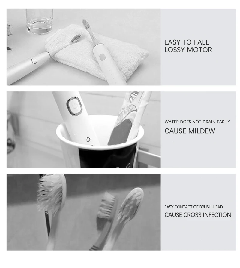 【Держите зубную щетку сухой 】 Большой размер пор для слива воды, не бойтесь влаги, предотвращайте повреждение корпуса электрической зубной щетки; он может сохранять ваши зубные щетки сухими и предотвращать рост бактерий, также может быть установлен на стене для зарядки без снятия зубной щетки.