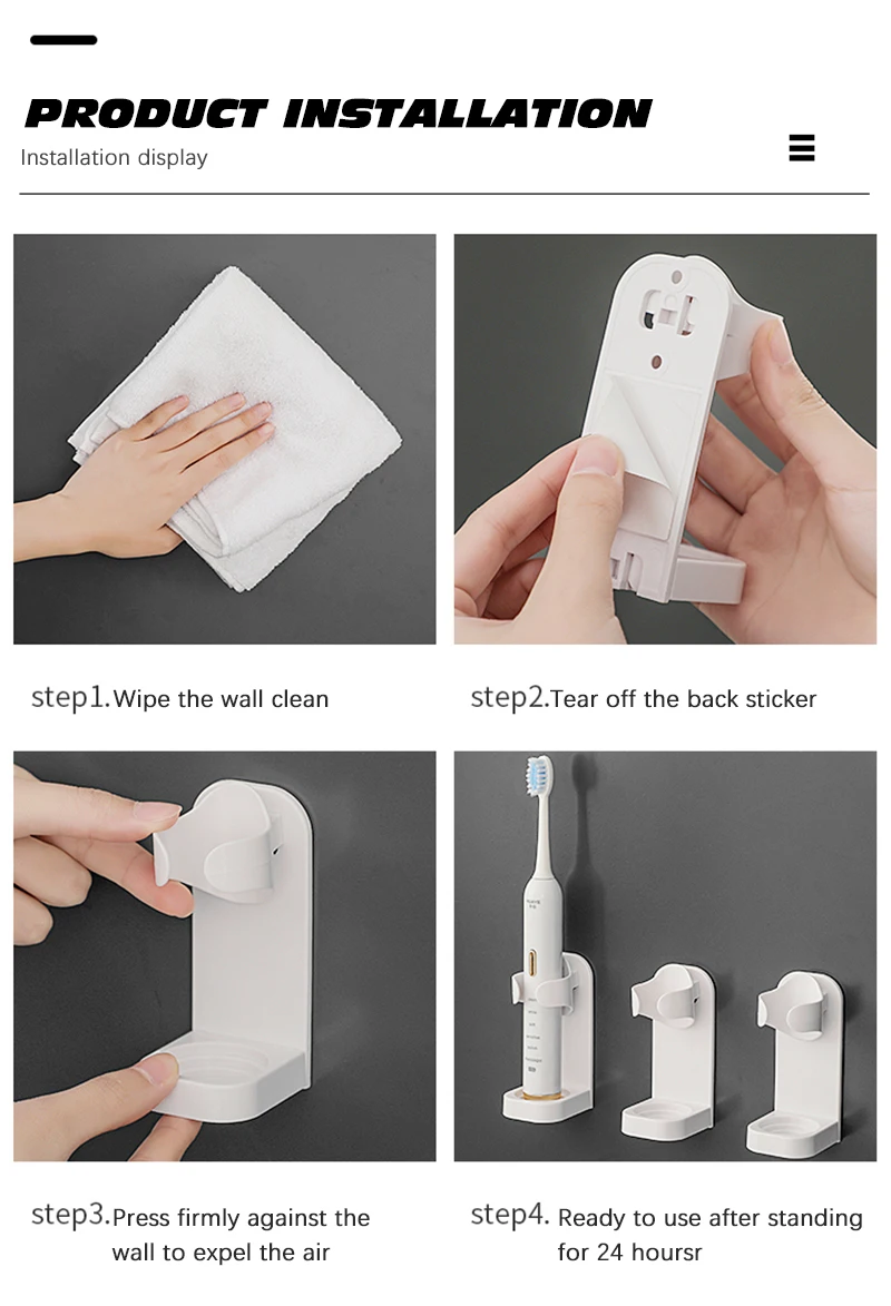 【ЭКОНОМИЯ ПРОСТРАНСТ】 Наш держатель для электрических зубных щеток поставляется с экологически чистой самоклеящейся нано-лентой вместо обычной поролоновой ленты. С прочными задними лентами он может сэкономить ваше пространство и сделать вашу уборную и ванную комнату аккуратной. Он широко используется в ванной, на открытом воздухе, на кухне, в украшениях.