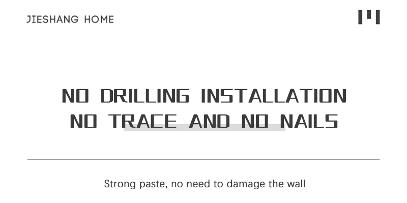 【 ПРОСТОТА УСТАНОВКИ 】 С прочными задними лентами, очень легко установить за секунды. БУРЕНИЕ НЕ НУЖНО. Его можно наклеивать на различные поверхности без повреждения поверхности. Сильная несущая способность, прочная и нелегко упасть.