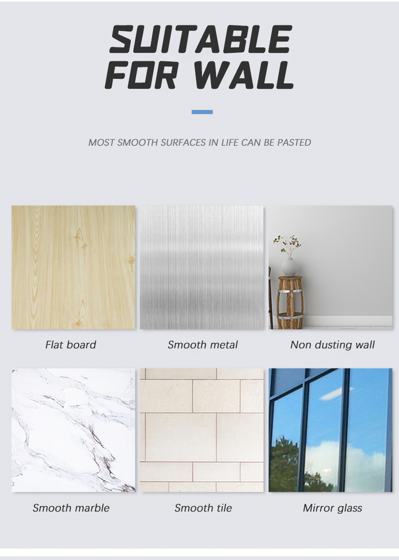 2. Клей подходит для гладких и плоских поверхностей, таких как плитка, стекло, дерево, металлические покрытия и т. Д.