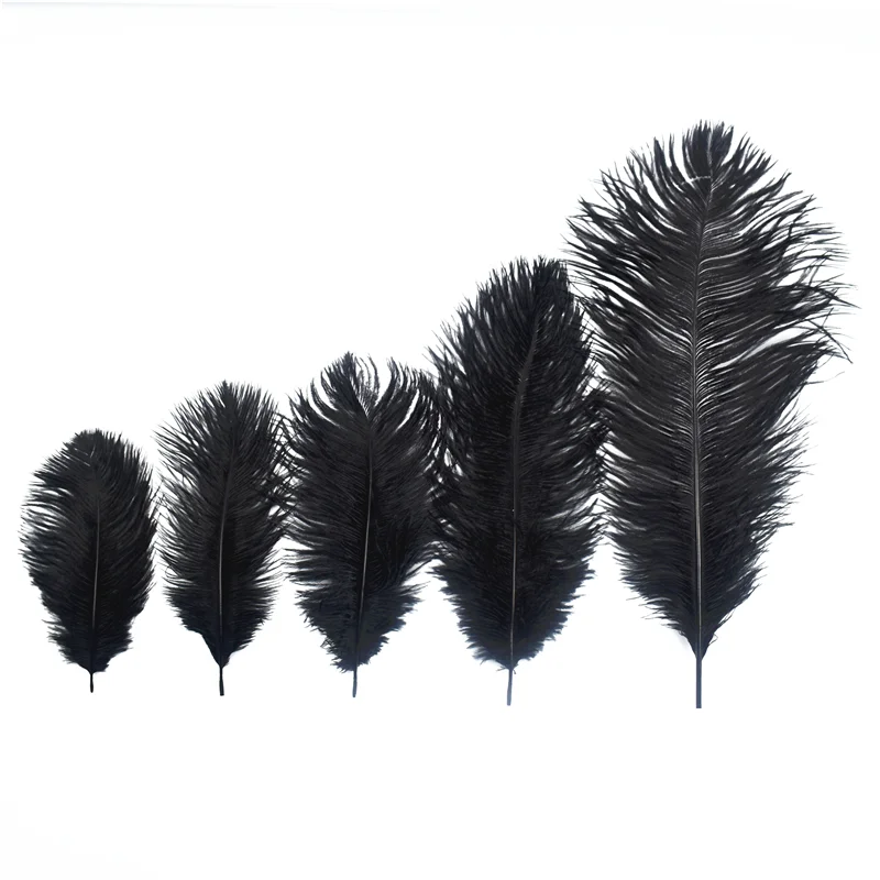 Страусиное перо 15-70 см, черное, для рукоделия, для середины стола