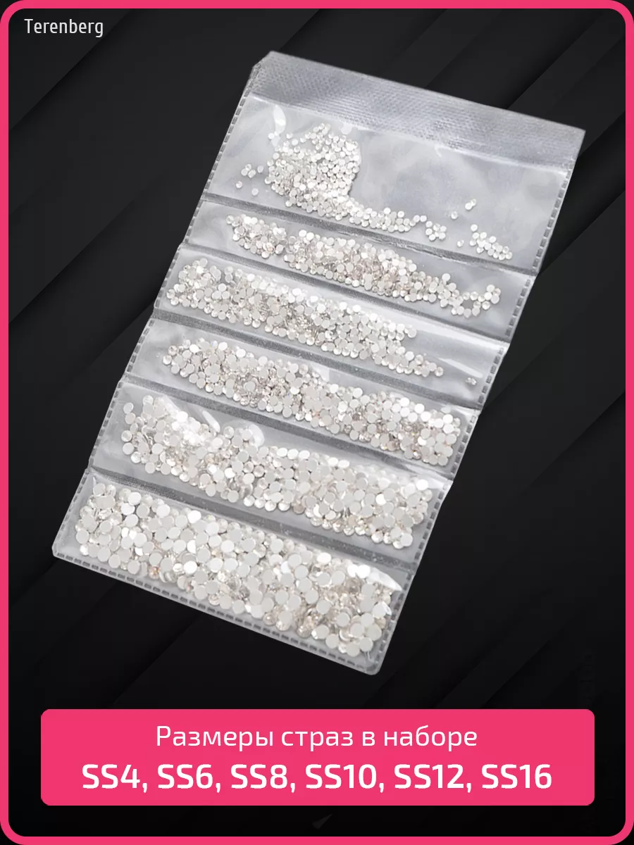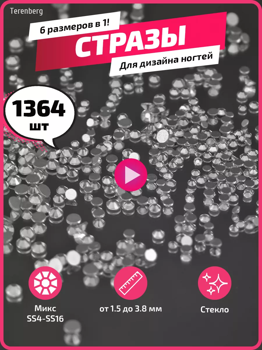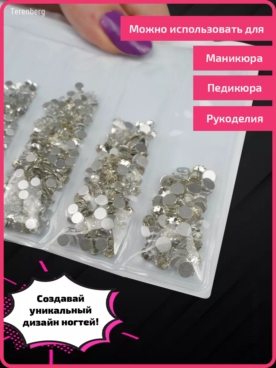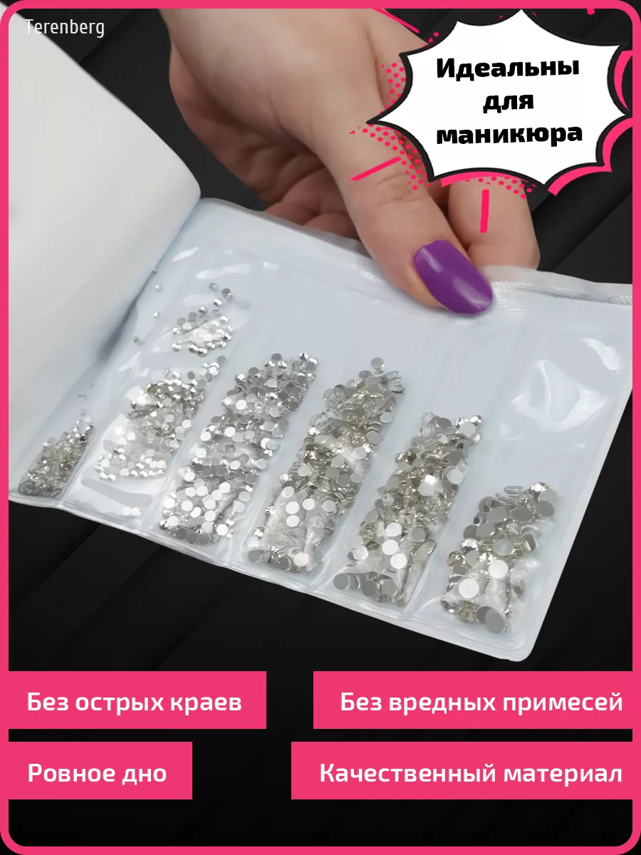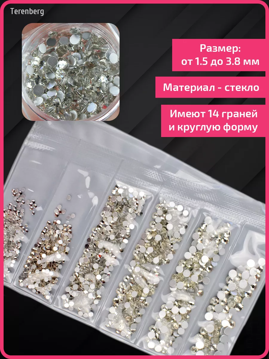 Комплектация 1 упаковка; стразы для маникюра и педикюра, для дизайна ногтей; стразы 1364 шт; стразы 6 размеров