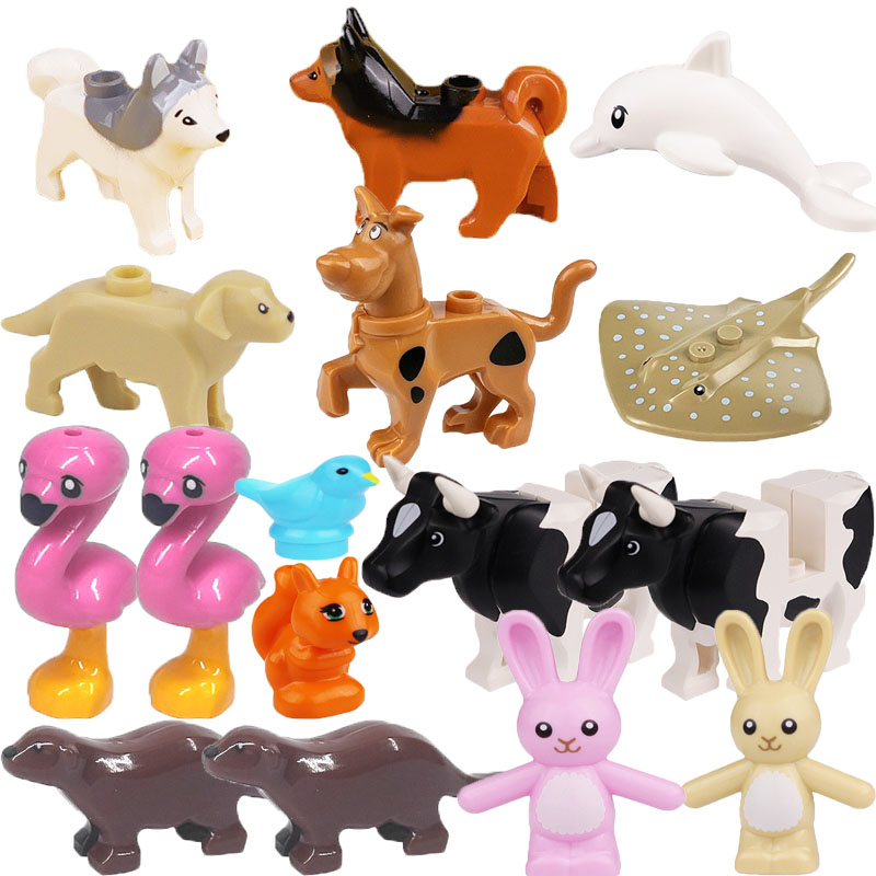 Строительные блоки для животных, зоопарк, вид на улицу, коза, лось, белка, олень, собака, дельфин, аксессуары для друзей, игрушка, подарок