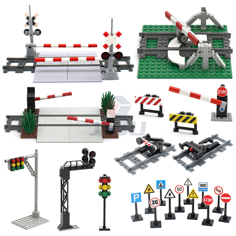 Строительные блоки: Городской дорожный знак, железнодорожный шлагбаум, MOC Street View, аксессуары, блоки, индикатор скорости, детская игрушка