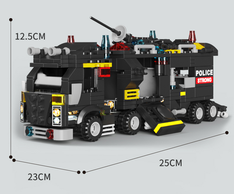 Содержание упаковки: 1 комплект строительных блоков городского полицейского грузовика и подробные инструкции