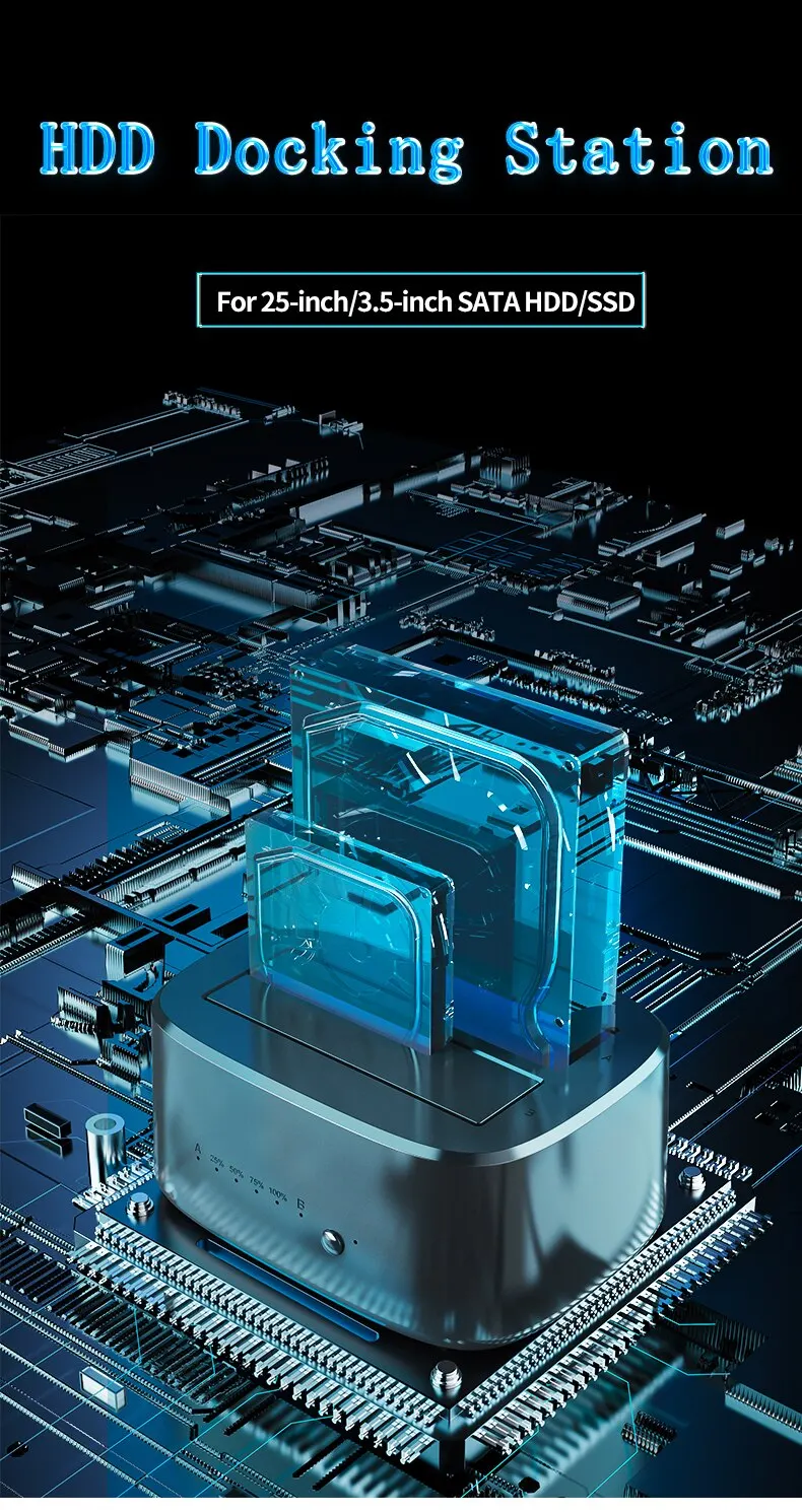 Эта док-станция, совместимая с 2,5-дюймовым или 3,5-дюймовым жестким диском/твердотельным накопителем до 16 ТБ на отсек, обеспечивает более удобный способ передачи данных между жестким диском и компьютером через свободный порт USB.