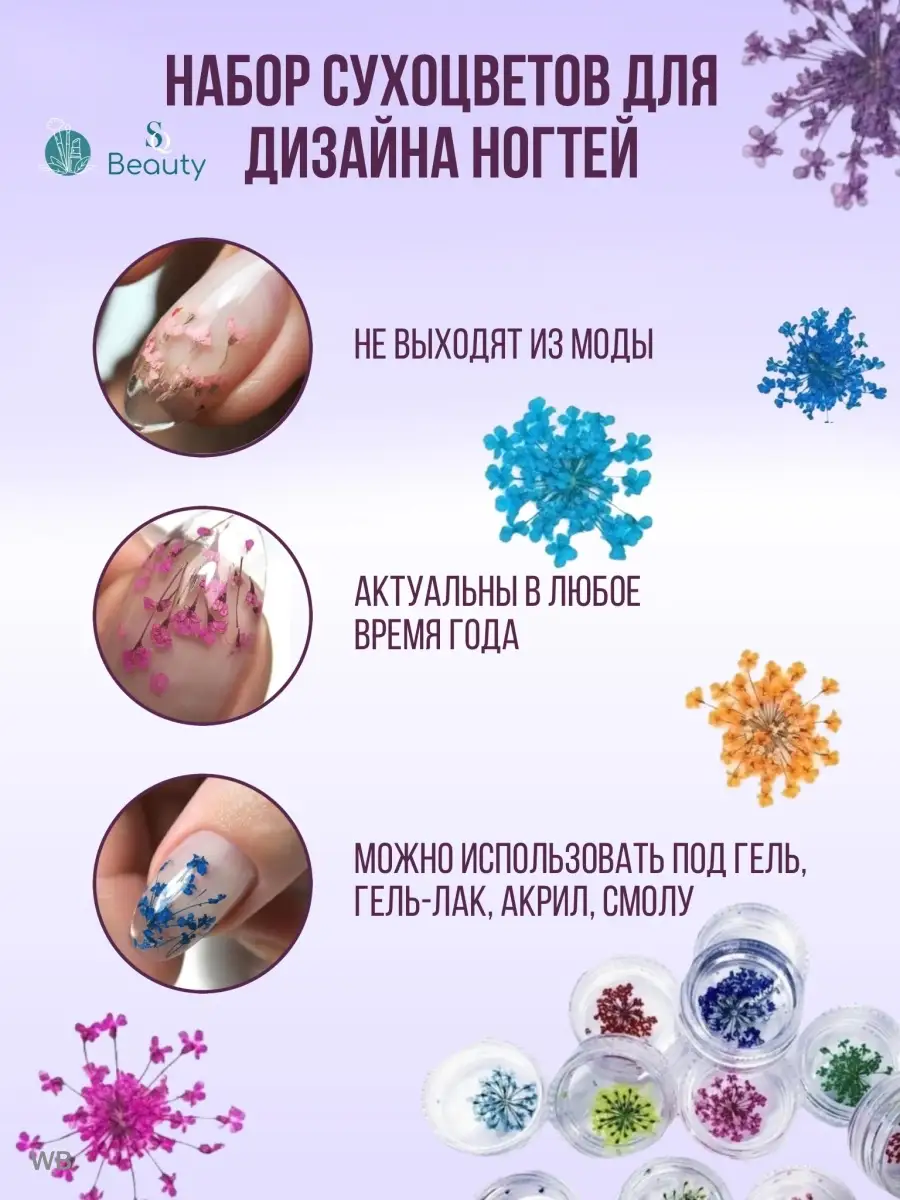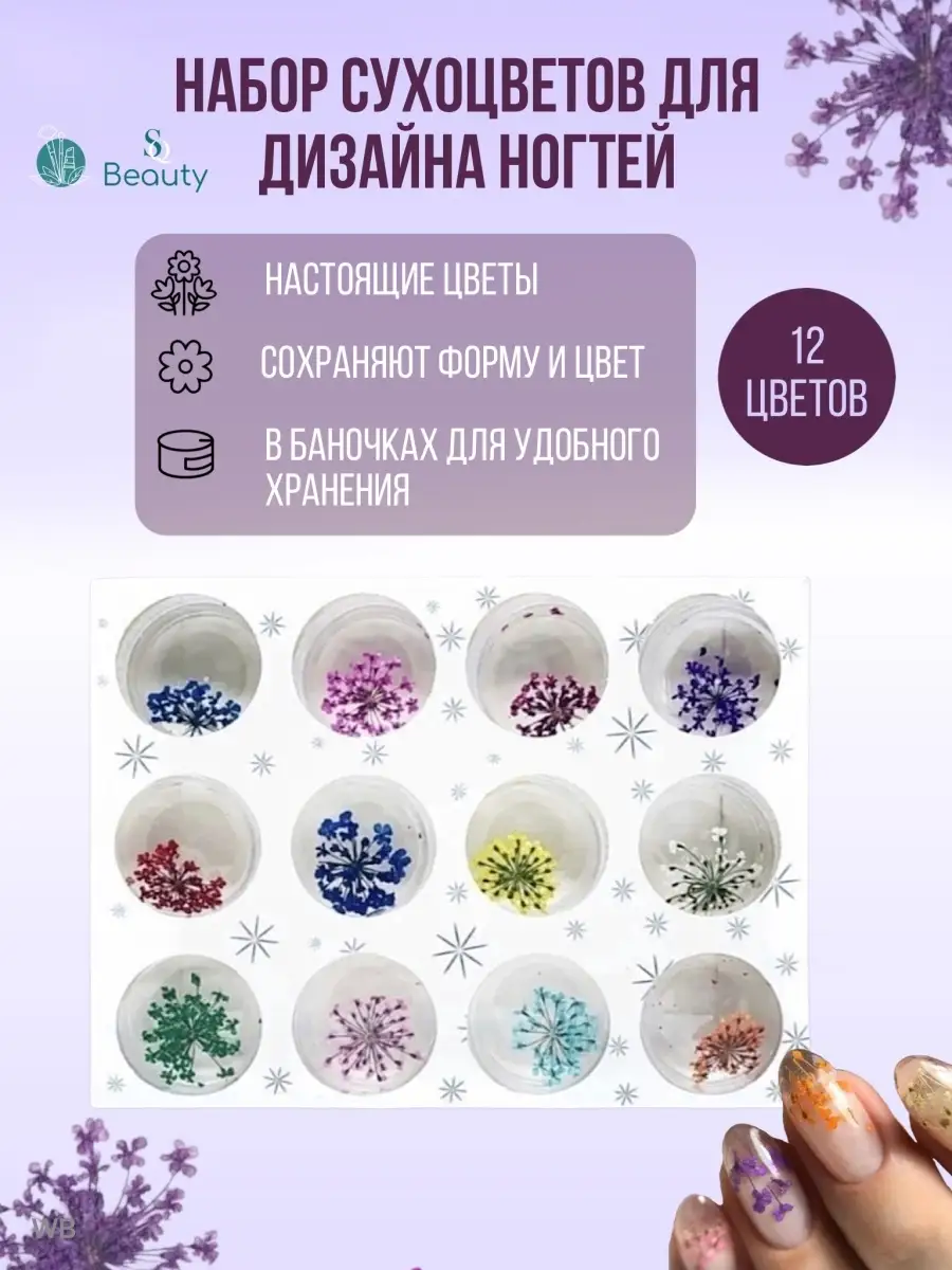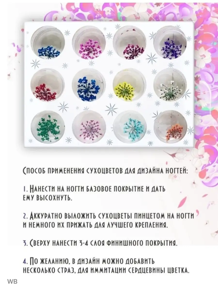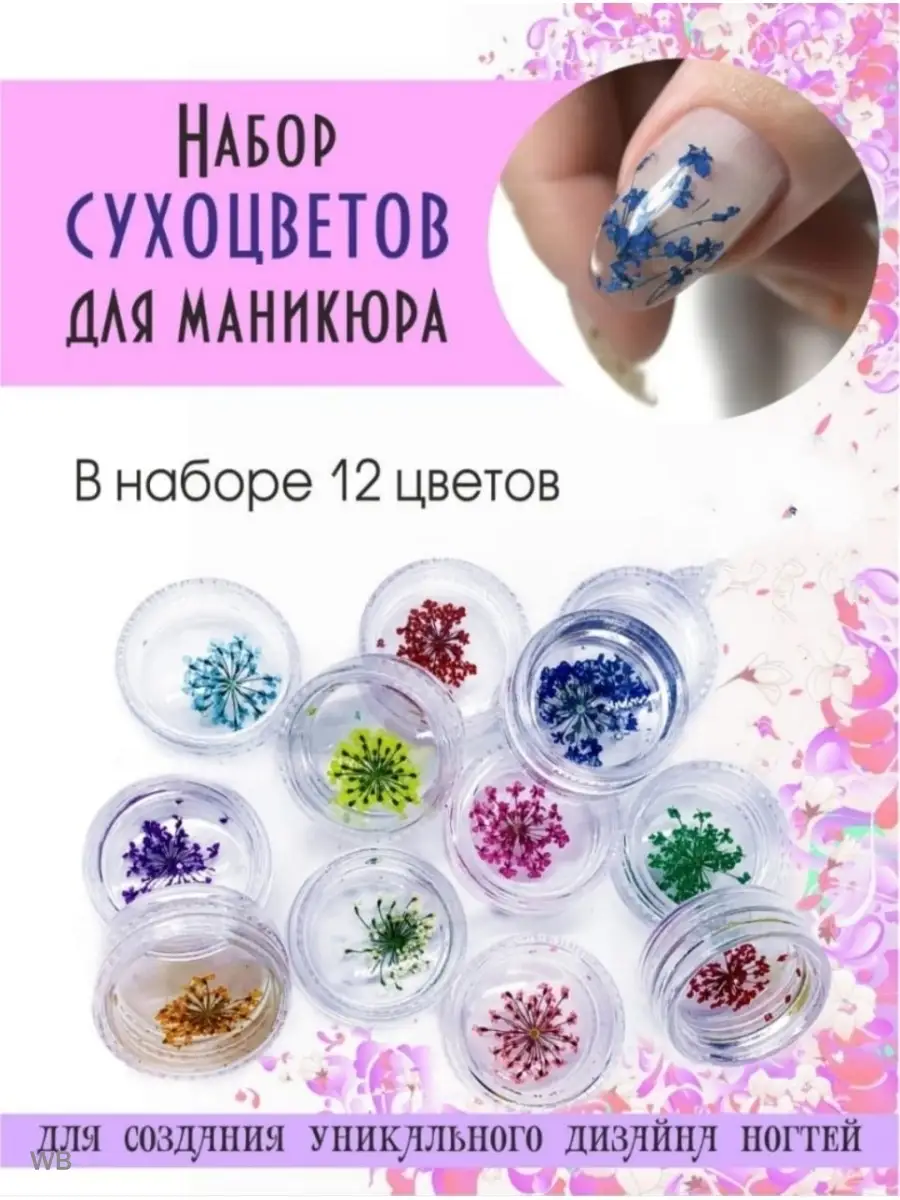Сухоцветы для дизайна ногтей 12 шт