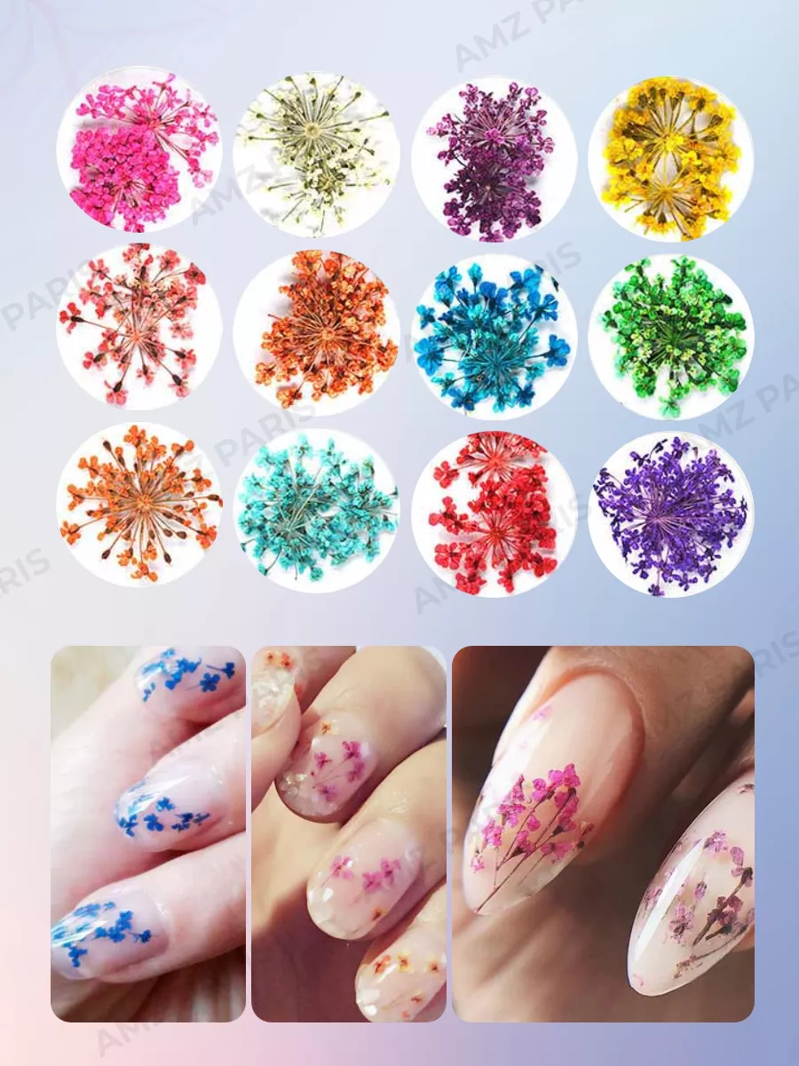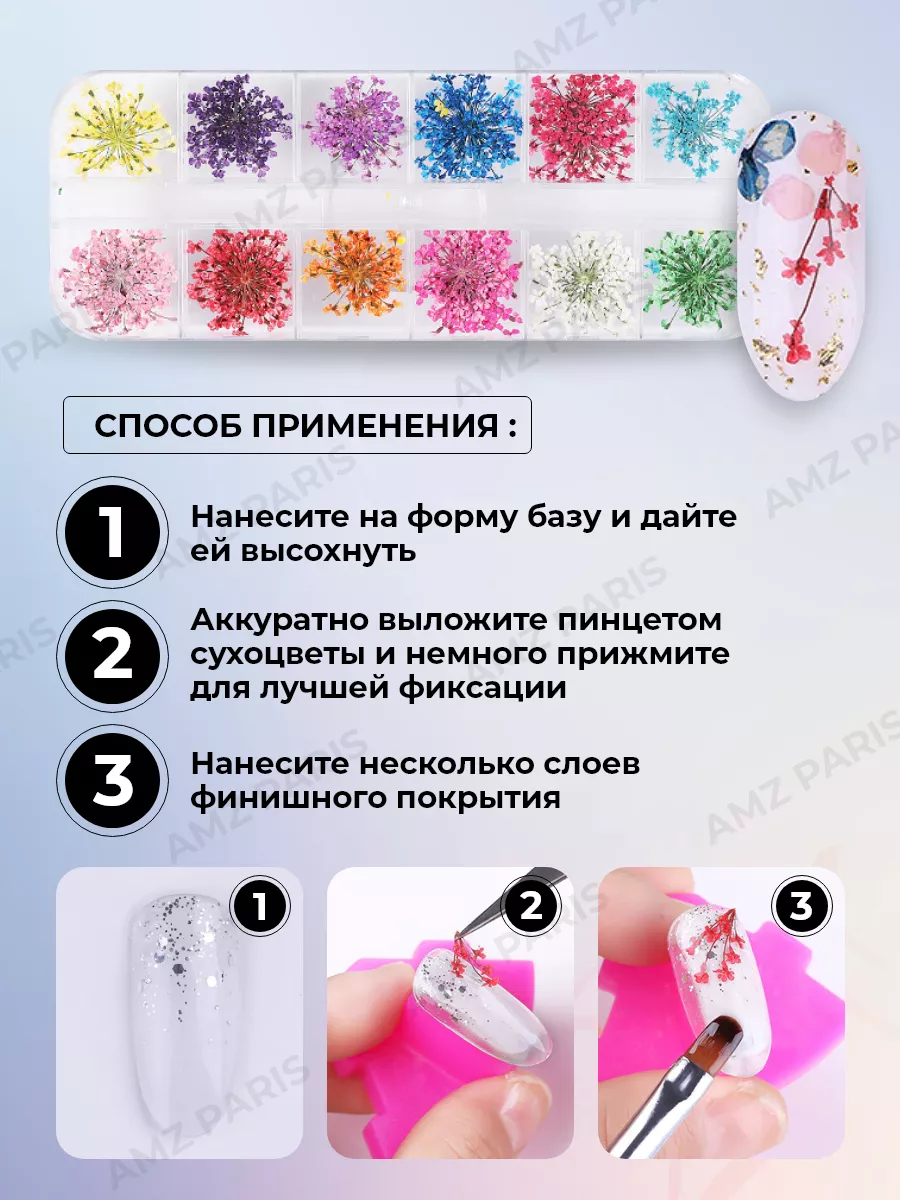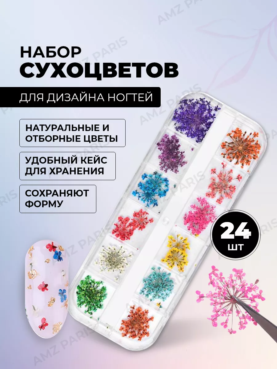 Комплектация украшение для ногтей в виде цветочков - 24 шт; сухоцветы для творчества эпоксидной смолы; Декор для маникюра и педикюра; дизайн для маникюра