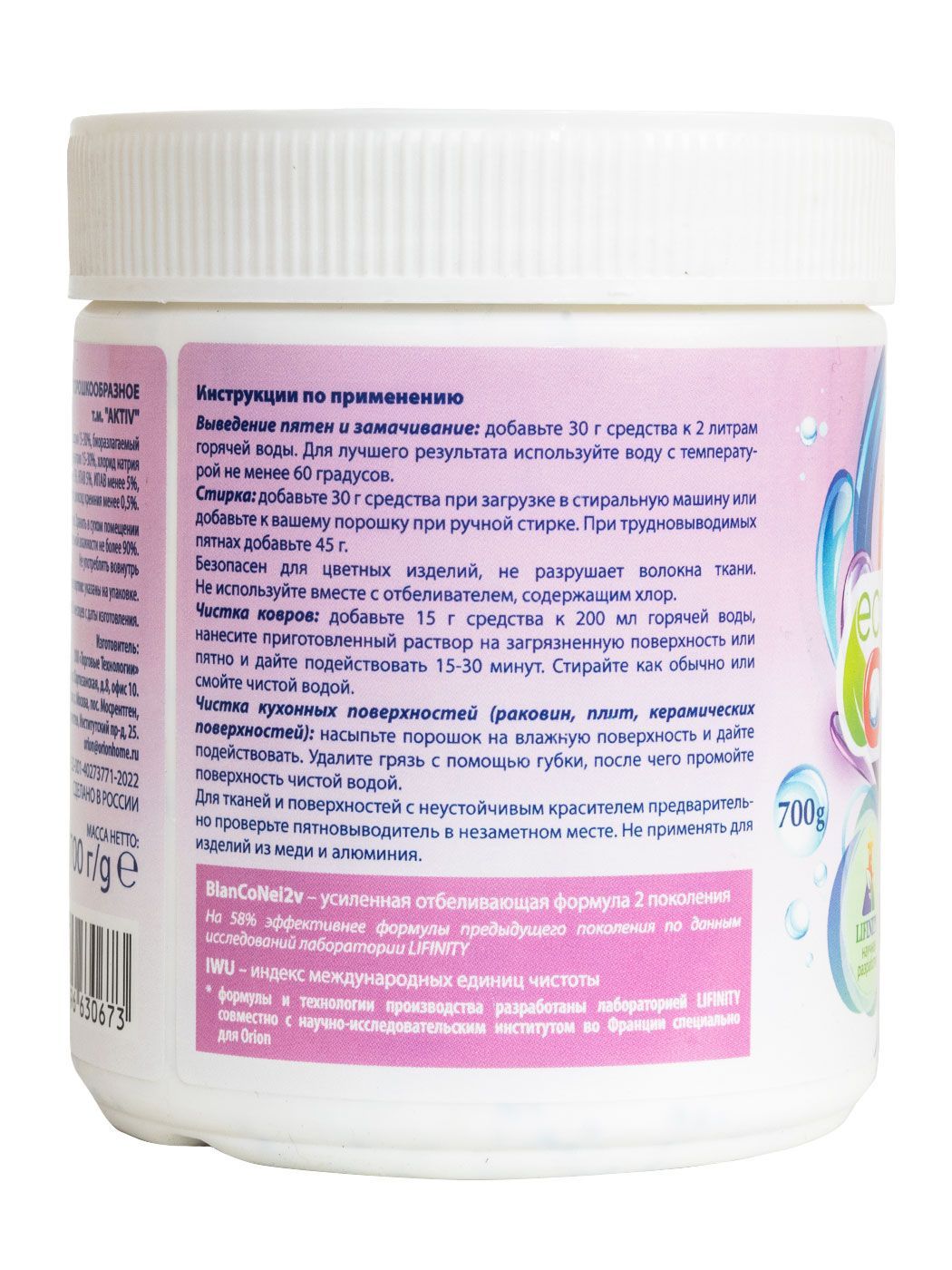 Артикул ORION Отбеливатель-пятновыводитель порошок 700 г