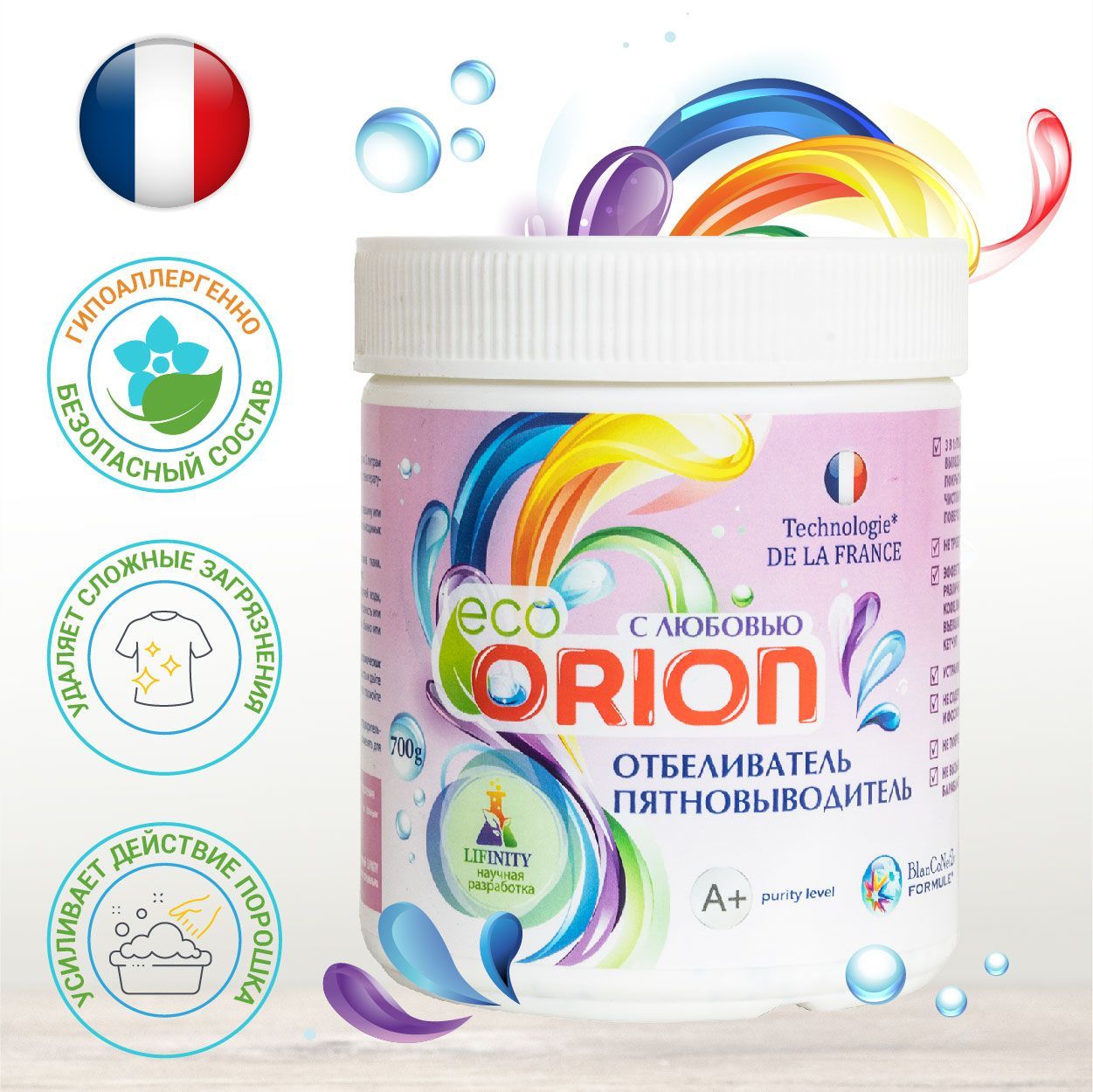 Сухой отбеливатель-пятновыводитель ORION белоснежный результат с каждой стиркой, 700 гр