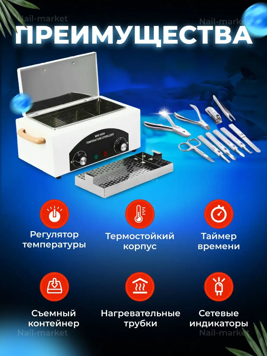 Комплектация Стерилизатор; Стерилиазтор маникюрных инструментов; Сухожаровой шкаф; Стерилизатор косметологический