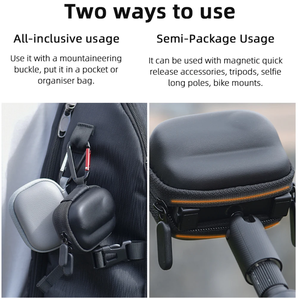 5. Жесткая Защита корпуса:Жесткий внешний вид обеспечивает надежную защиту вашей камеры, защищая ее от случайных падений и давления. Кроме того, мини-защитная сумка поставляется с зажимом-карабином, позволяющим удобно прикрепить ее к рюкзаку или другому уличной экипировки в дороге.