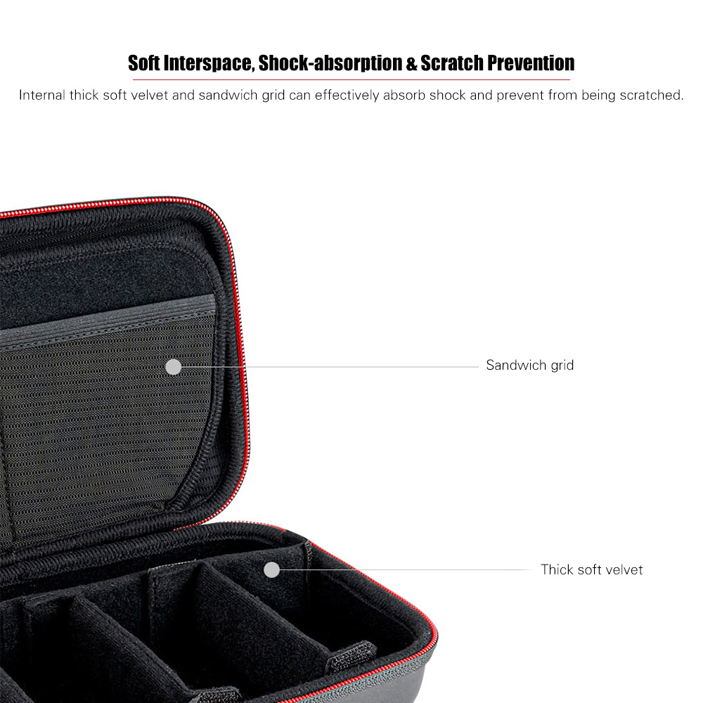 Может хранить спортивную камеру (совместимую с GoPro Hero 8/7/6/5), аккумулятор, селфи-палку, зажим для рюкзака, кабель для передачи данных и т. Д.