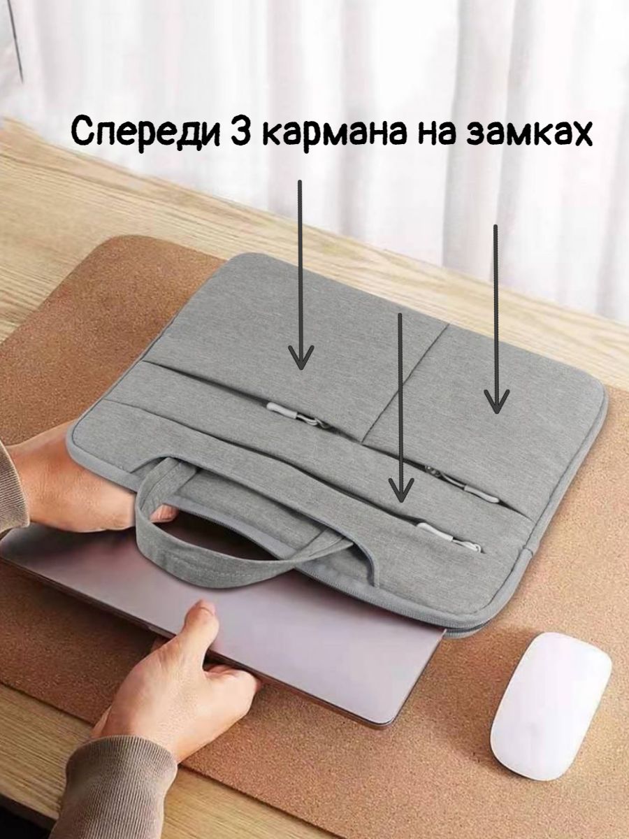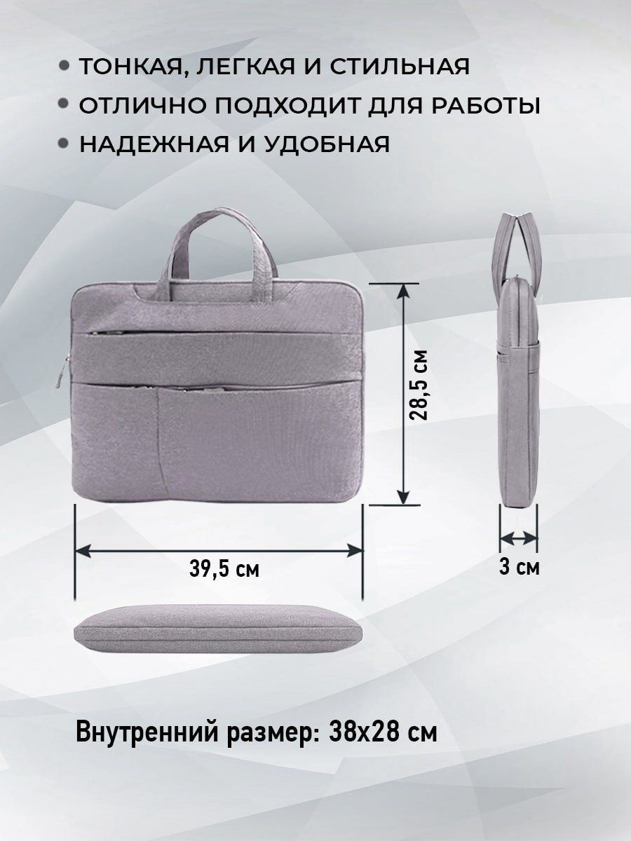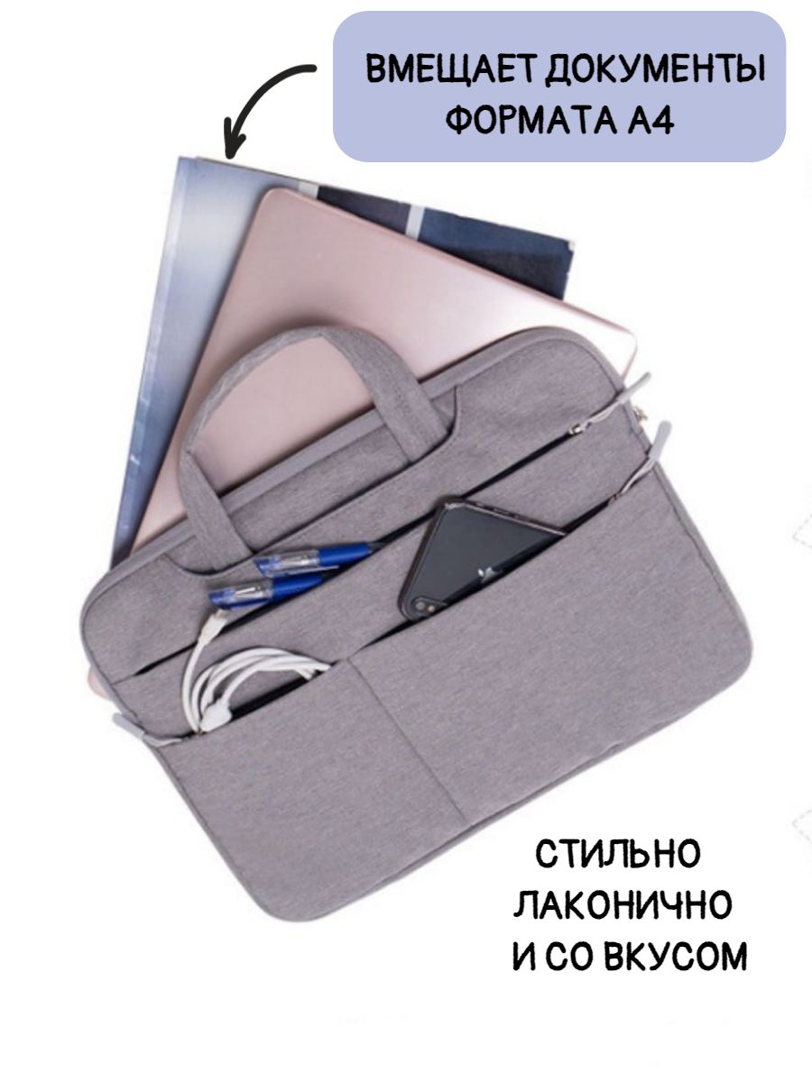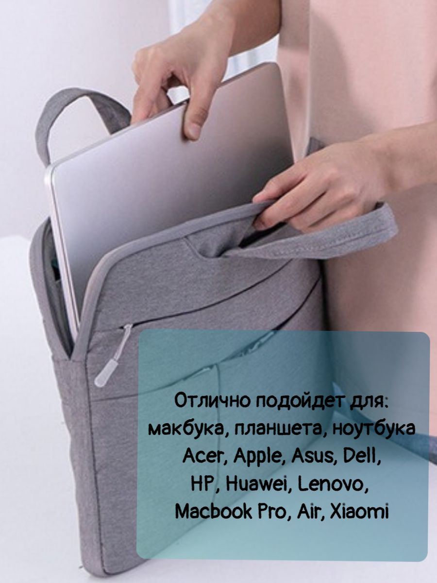 Описание: Тонкая, легкая и стильная сумка для ноутбука с диагональю до 15.6 дюймов. Можно использовать для устройств размера -15.6, 15, 14, 13.3 дюймов. Подходит для хранения макбука, планшета, ноутбука Acer, Apple, Asus, Dell, HP, Huawei, Lenovo, Macbook Pro, Air, Xiaomi и документов А4.