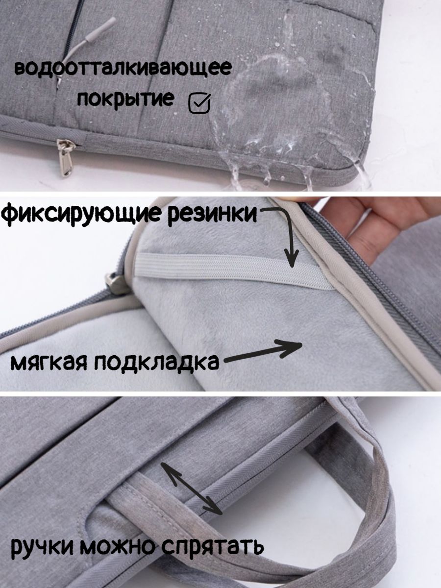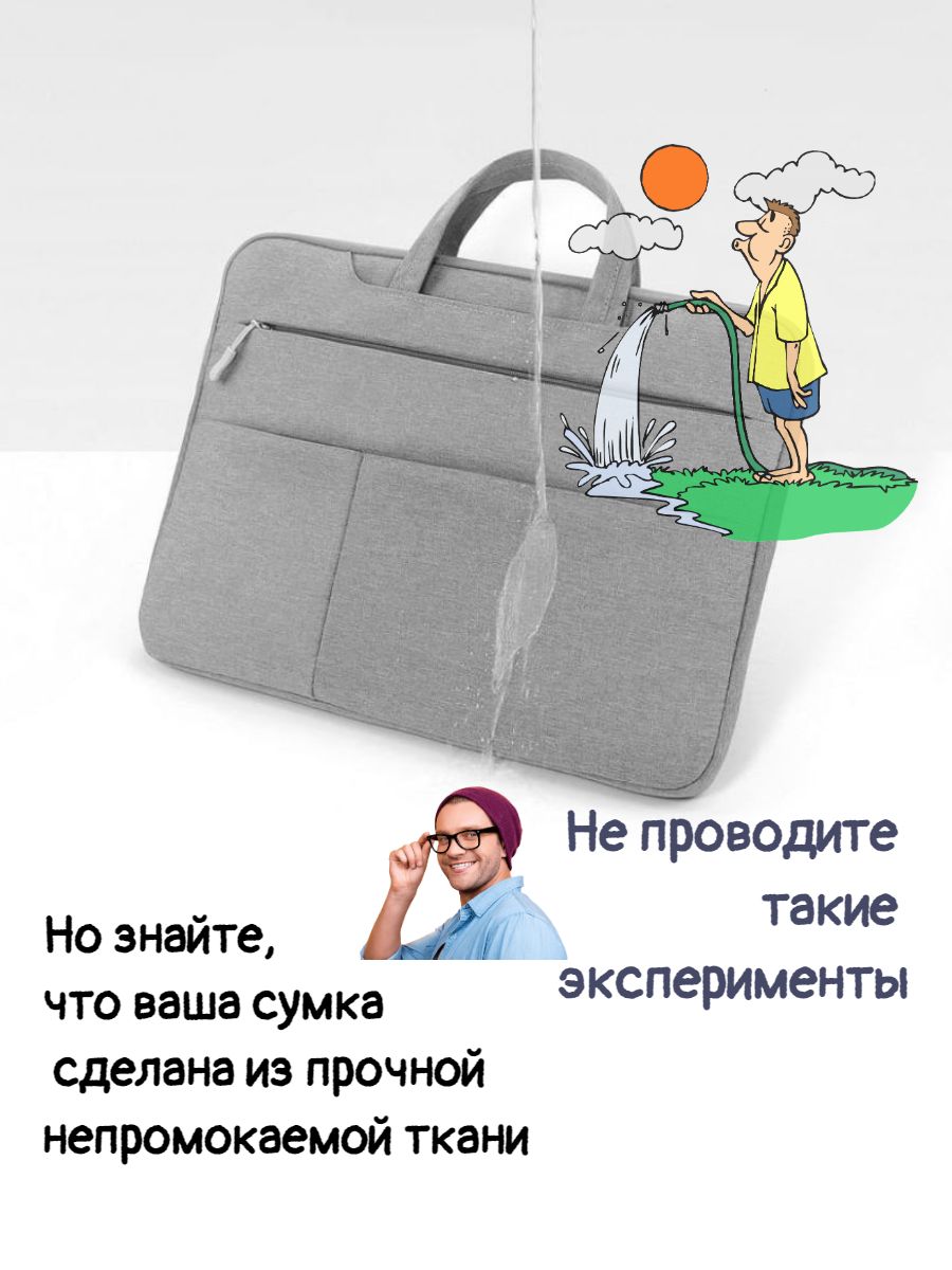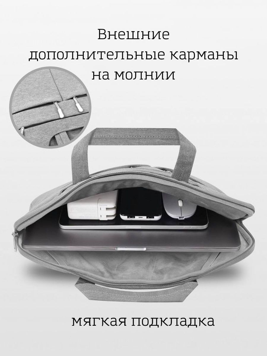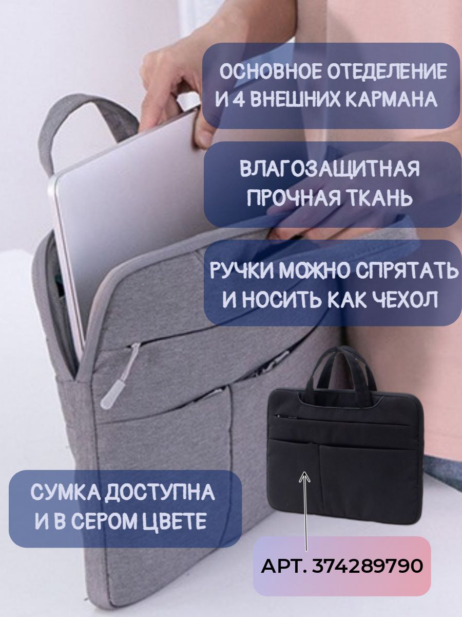 Описание: Тонкая, легкая и стильная сумка для ноутбука с диагональю до 15.6 дюймов. Можно использовать для устройств размера -15.6, 15, 14, 13.3 дюймов. Подходит для хранения макбука, планшета, ноутбука Acer, Apple, Asus, Dell, HP, Huawei, Lenovo, Macbook Pro, Air, Xiaomi и документов А4.