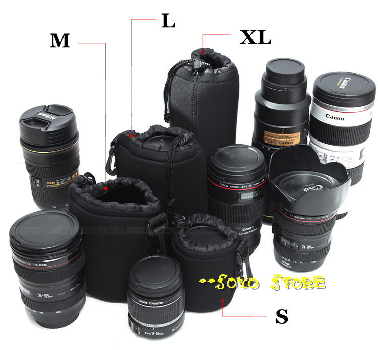 Сумка для объектива камеры, Мягкий неопреновый водонепроницаемый чехол для DSLR Lente, stora S M L XL, мягкий нейлон для Canon, Nikon, Sony, Pentax, DLSR камеры