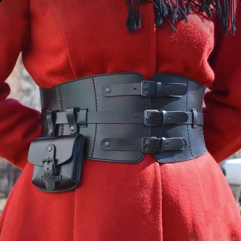 Сумка из воловьей кожи с черной пряжкой с язычком, широкий поясной ремень, кожаный женский корсет, украшение, универсальный ремень