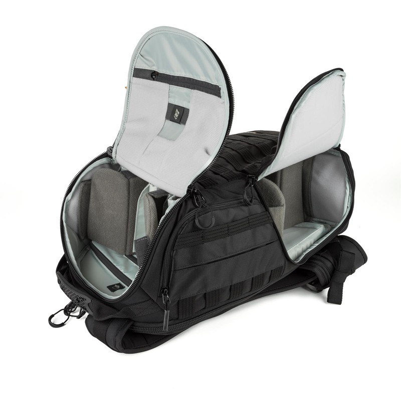 ProTactic 450 AW II обеспечивает целенаправленный комфорт и поддержку с помощью ремня безопасности системы ActivZone, который включает поясной ремень, который легко снимается для хранения и путешествий. Кроме того, сумка предлагает встроенный всепогодный чехол, чтобы защитить ваше снаряжение от непогоды. В комплект входят пять модульных аксессуаров, в том числе чехол для бутылки с водой, Аксессуар Чехол, чашка для штатива и два ремня с подпрутом, все они совместимы с SlipLock.