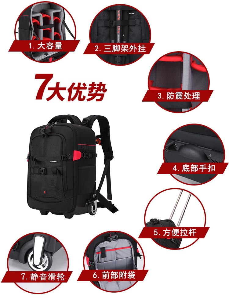 Сумка для фотоаппарата Сумка на колесиках Сумка для фотографий Видеокамера Рюкзак для цифровой камеры Багаж Дорожная тележка Чехол для фотосъемки Рюкзак