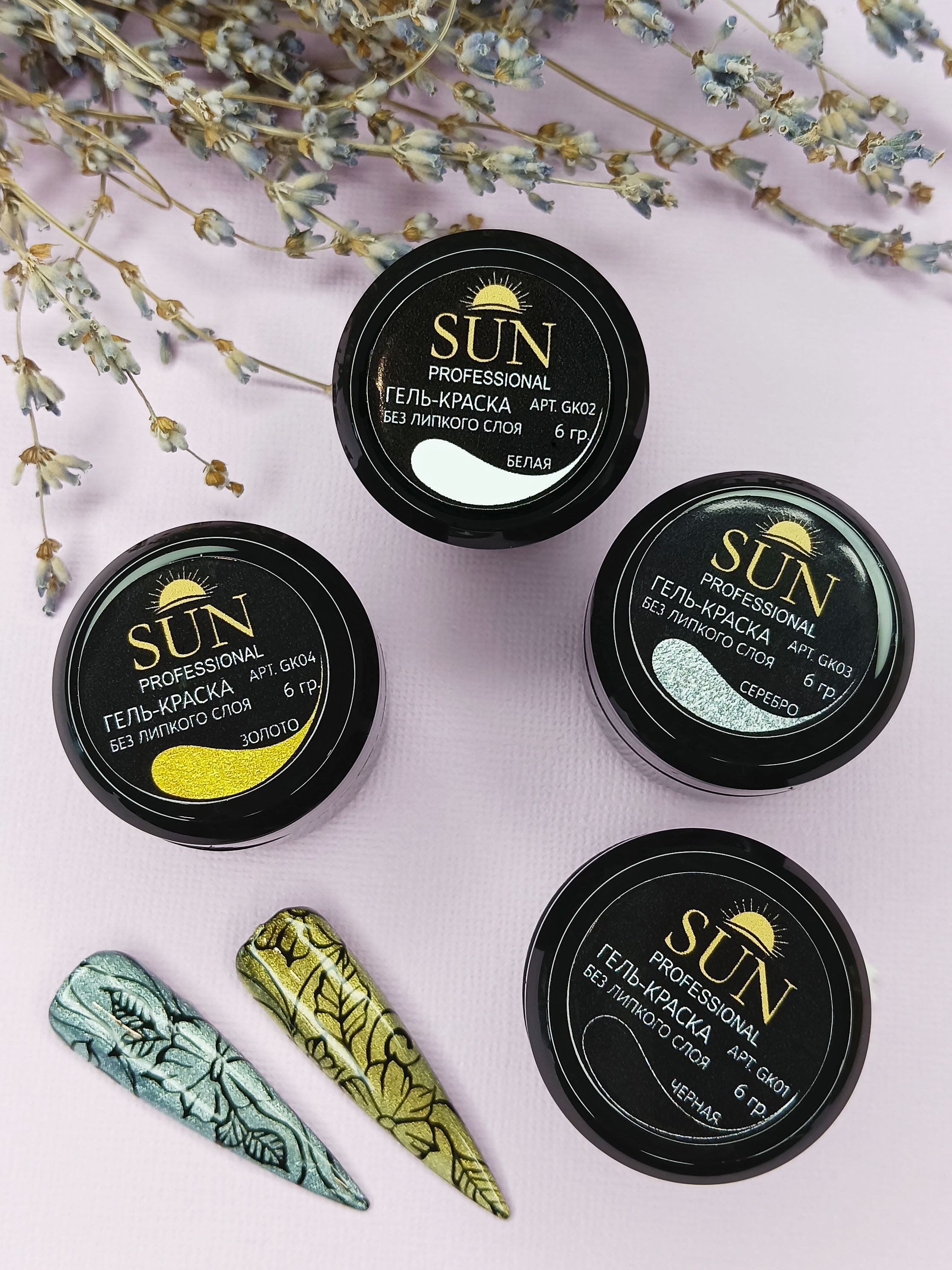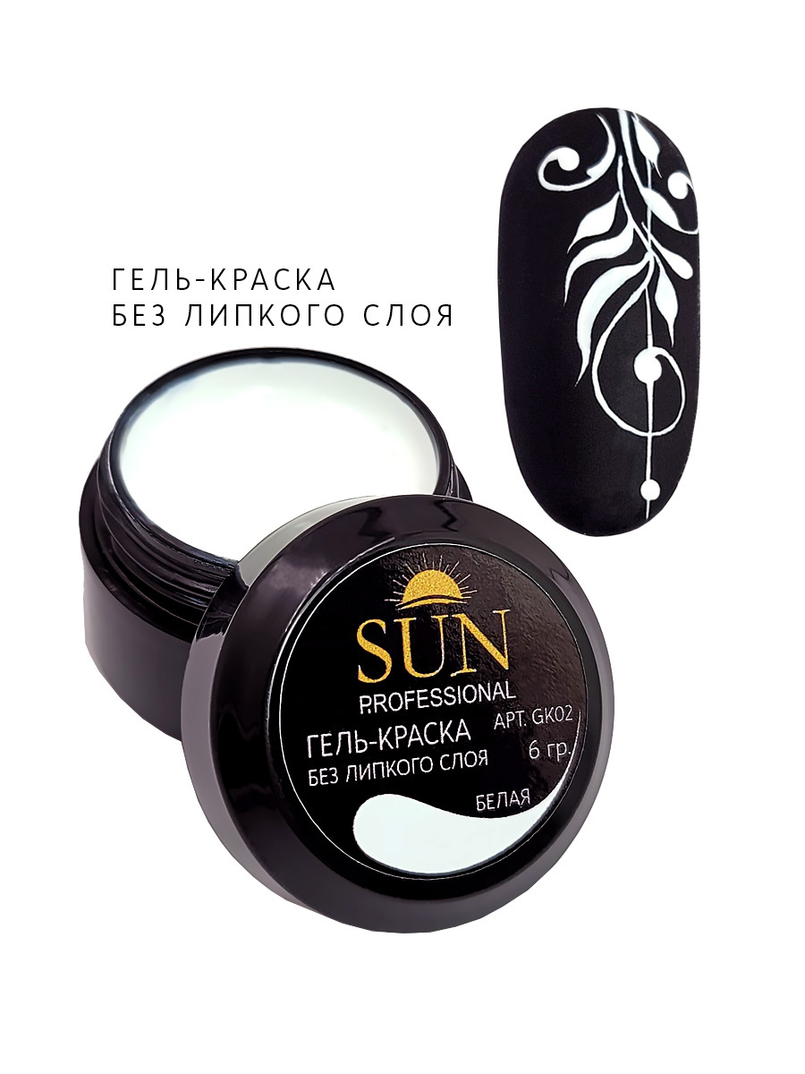 SUN Professional Гель краска для ногтей без липкого слоя №02 белая, для дизайна ногтей и маникюра