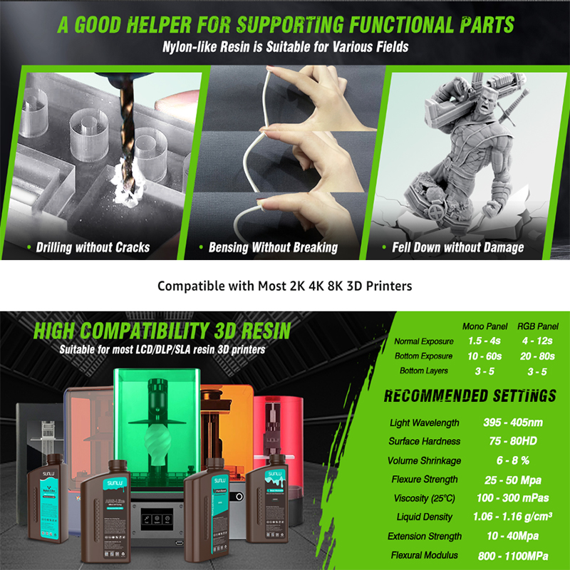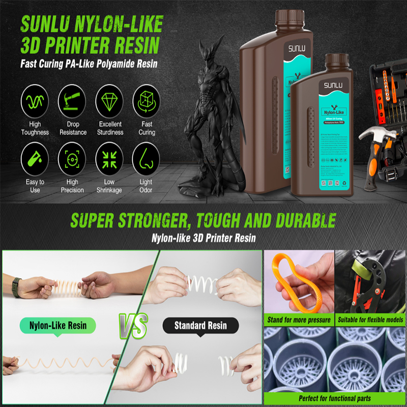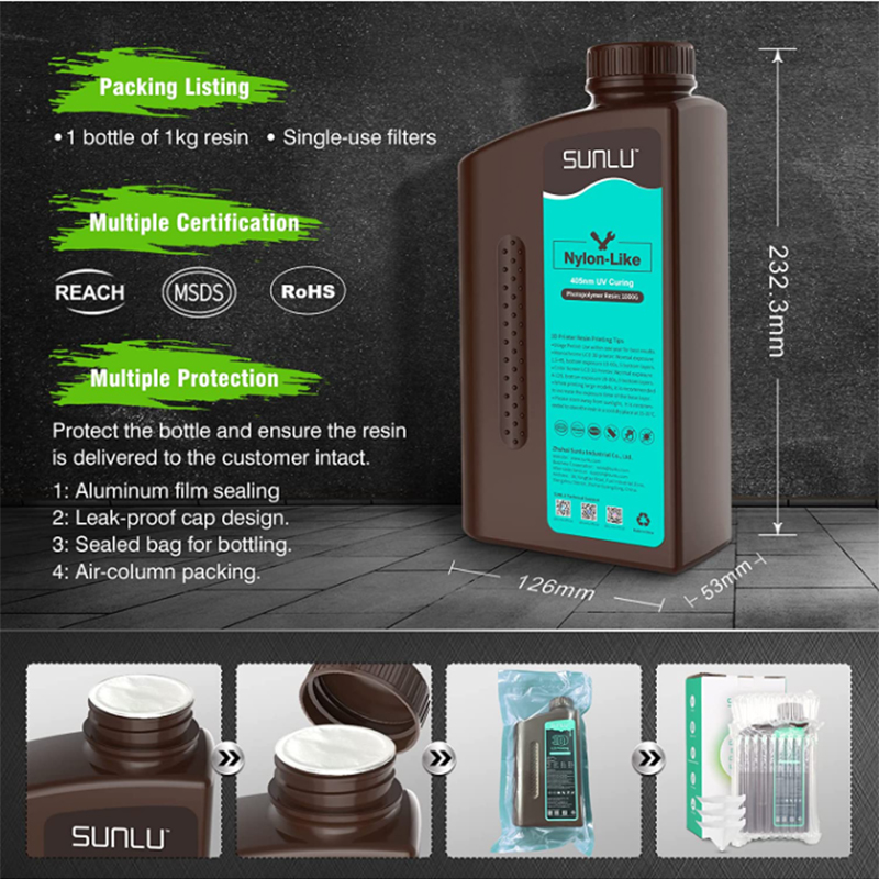 SUNLU/JAY0 Нейлон, как 1 кг, 395-405 нм, УФ-светоотверждение, жидкая фотополимерная смола для 3D-принтера 2K 4K 6K 8K LCD/DLP/SLA