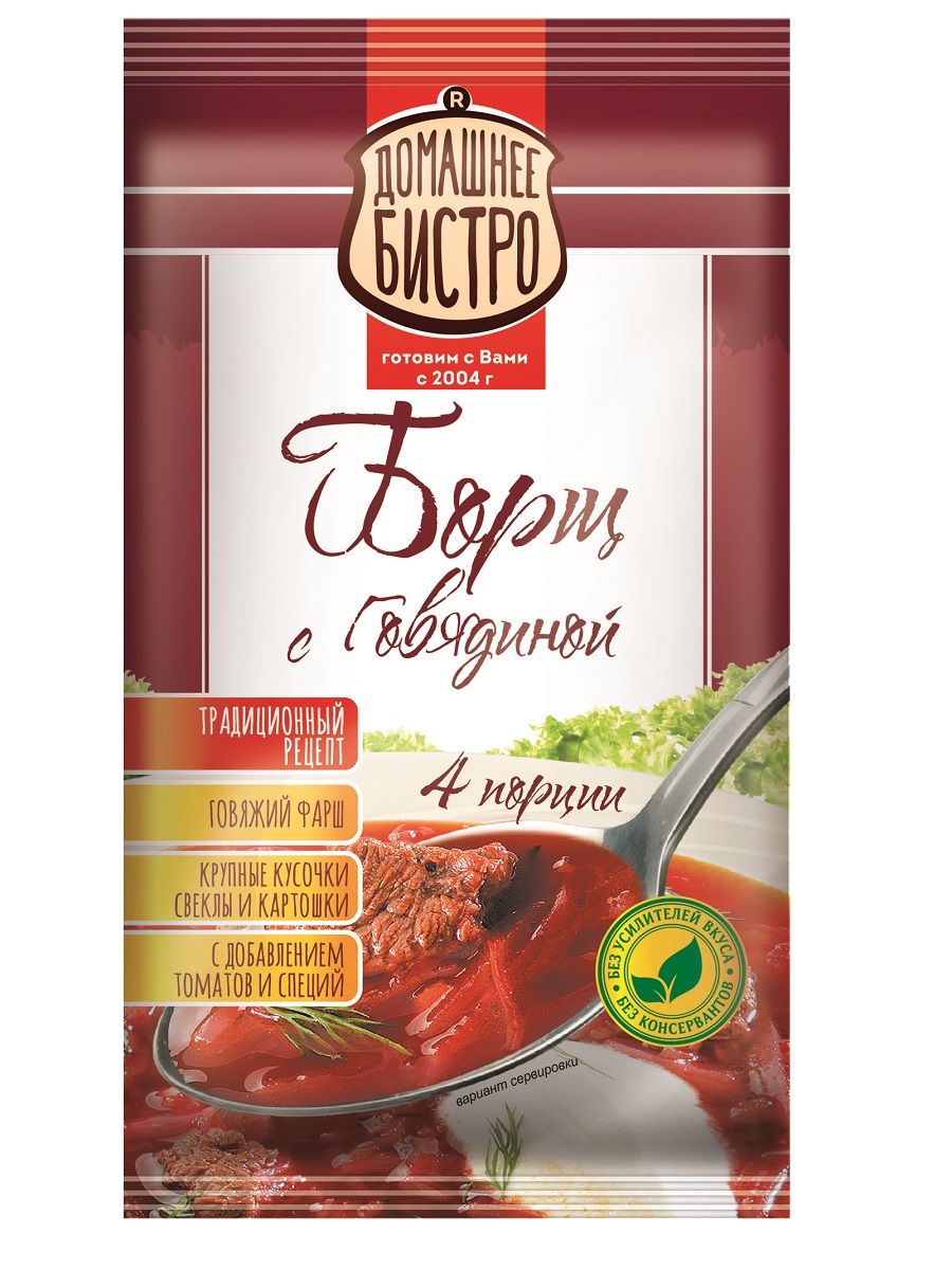 Суп Домашнее Бистро " Борщ с говядиной" 60 гр. ш/б 12 шт.