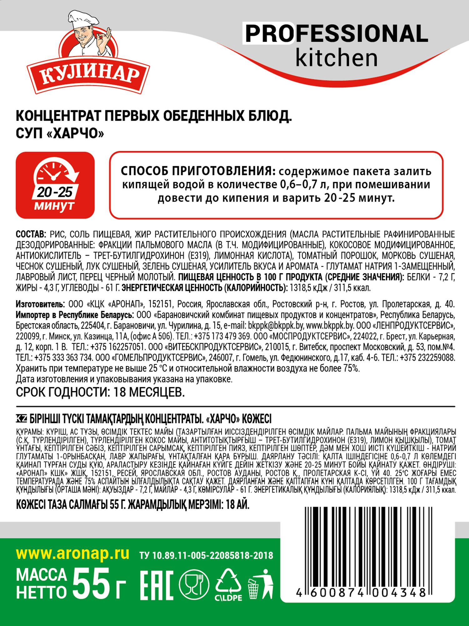 Суп харчо Кулинар Традиционный Быстрого приготовления 20 - 25 минут и готово 275 г