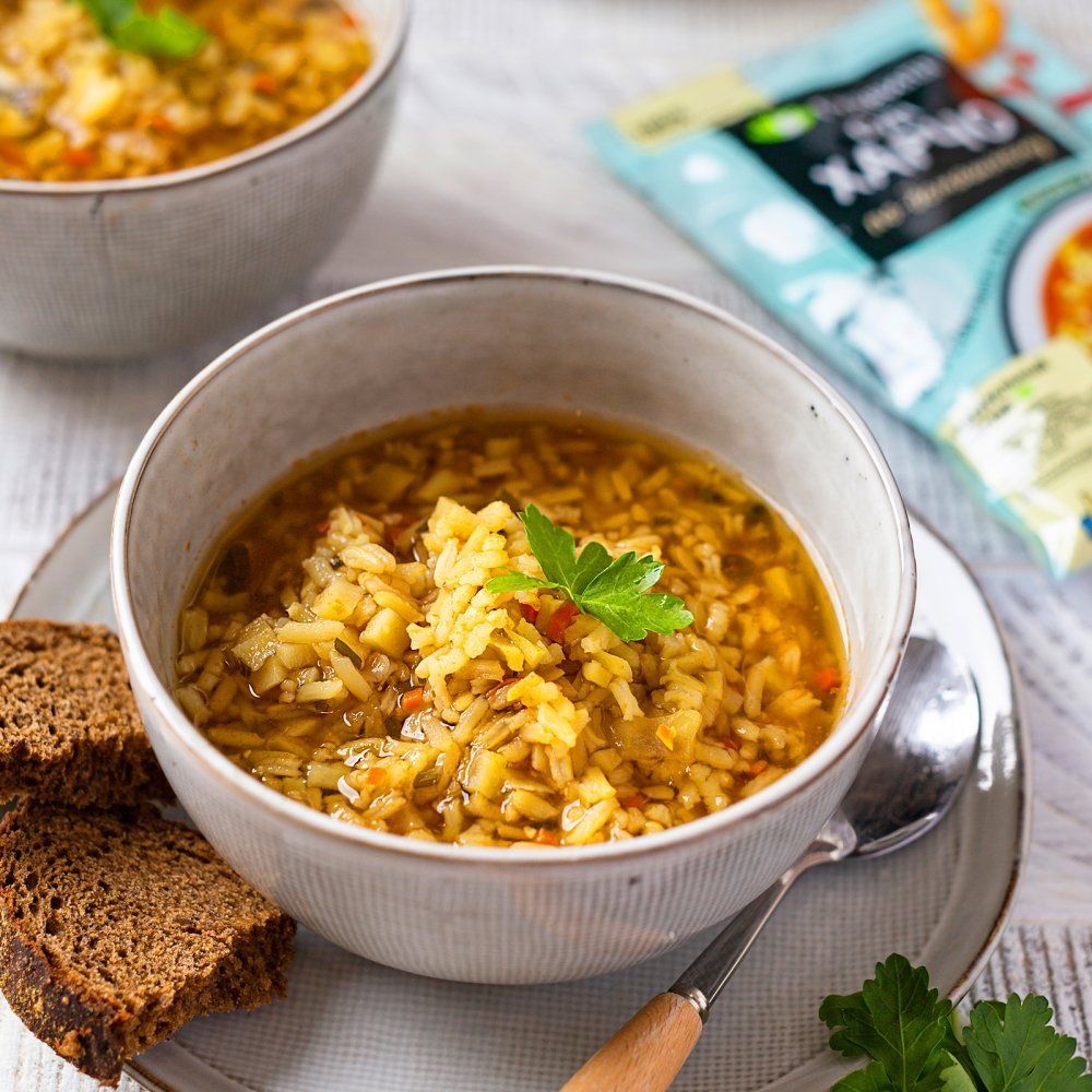 Описание: Готовое решение для обеда или ужина – это грамотно составленные рецептуры на основе натуральных ингредиентов. Мы сознательно отказываемся от усилителей вкуса. Ароматные специи, овощи и мясо создают лучшие вкусовые сочетания. Благодаря полному составу, готовить суп просто и вкусно, достаточно высыпать содержимое в кипящую воду/мясной бульон и варить 20 минут. Продукт может содержать следы глютена. Способ приготовления: 1. В кастрюлю с кипящей водой или бульоном 1,6 л. высыпать содержимое пакета. 2. Варить 20 минут на среднем огне, перемешивая 2-3 раза. При необходимости досолить по вкусу. Горячий, сытный, ароматный харчо с рисом может быть из говядины, баранины или курицы.