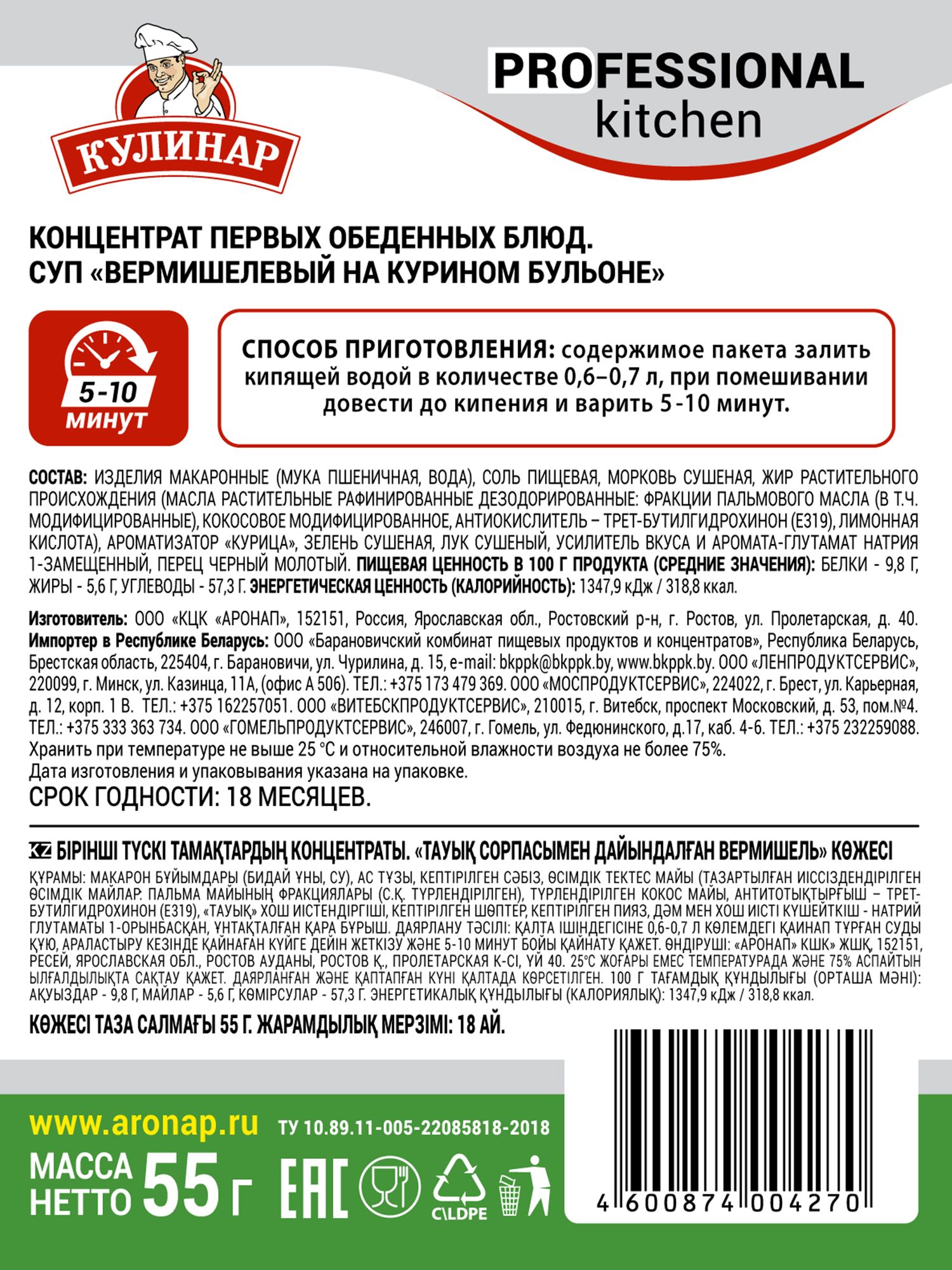 Описание: Суп вермишелевый на курином бульоне является неотъемлемой частью традиционной кухни. Сытный густой бульон прекрасно утолит голод и согреет. Суп быстрого приготовления очень удобен и прост в готовке. Суп куриный с макаронными изделиями Кулинар готовится всего 5 - 10 минут по указанной на упаковке инструкции. Купить суп вермишелевый на курином бульоне быстрого приготовления вы можете у нашего бренда Вокруг света. Ключевые слова: Суп, суп куриный, суп вермишелевый на курином бульоне кулинар, суп вермишелевый, суп вермишелевый традиционный, суп на курином бульоне, суп быстрого приготовления, суп быстрого приготовления продукты, быстросуп, еда быстрого приготовления, продукты быстрого приготовления, продукты питания, суп быстрого приготовления продукты, суп традиционный, смесь для супа, супы, смесь для блюд, смесь для первых блюд, суп вермишелевый купить