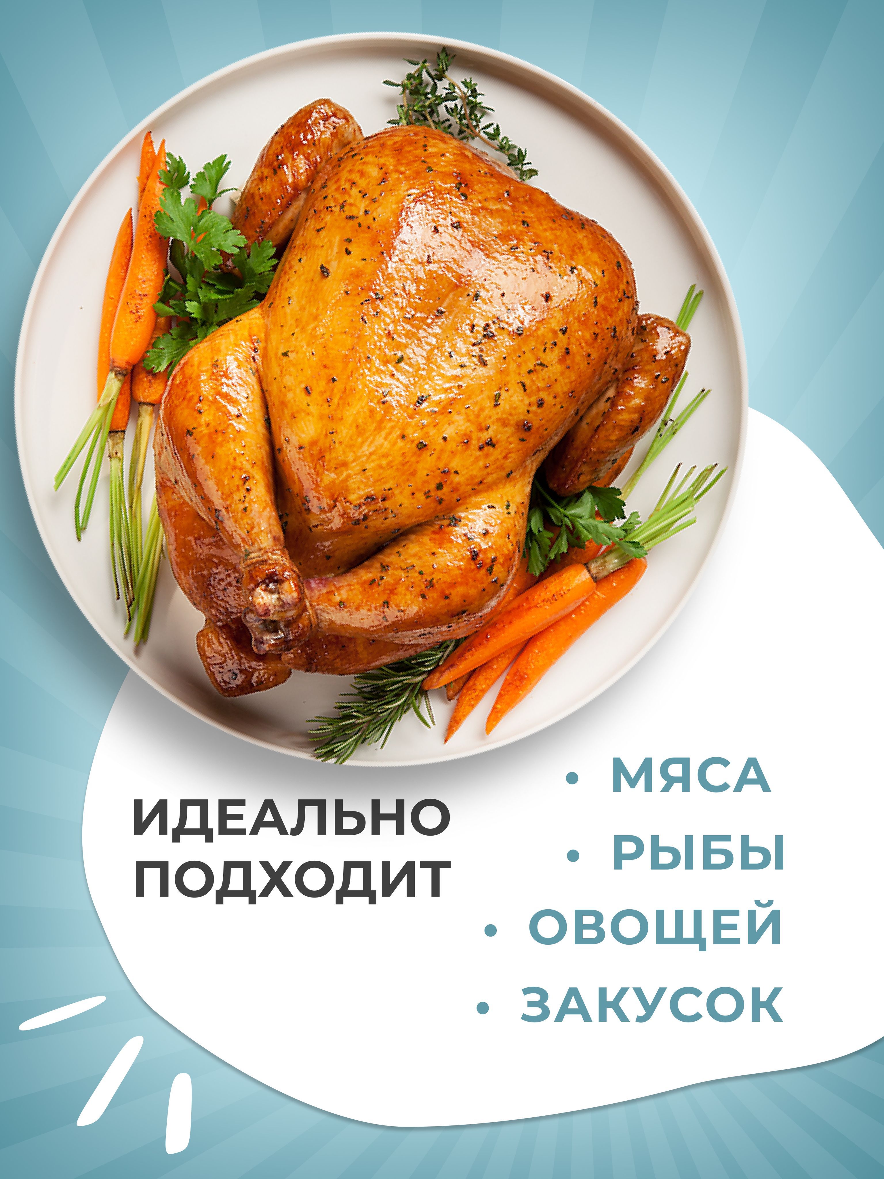 Назначение приправы: Для жаркого, Для блюд на гриле, Для блюд из картофеля, Для барбекю, Для консервирования, Для копчения, Для курицы, Для лазаньи, Для маринада, Для мясных блюд, Для плова, Для птицы, Для риса, макарон и пиццы, Для рыбы и морепродуктов, Для салатов