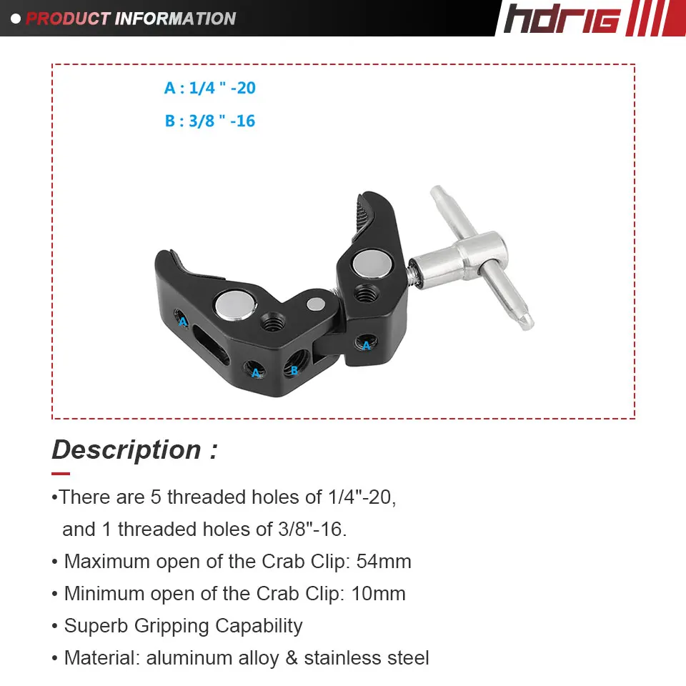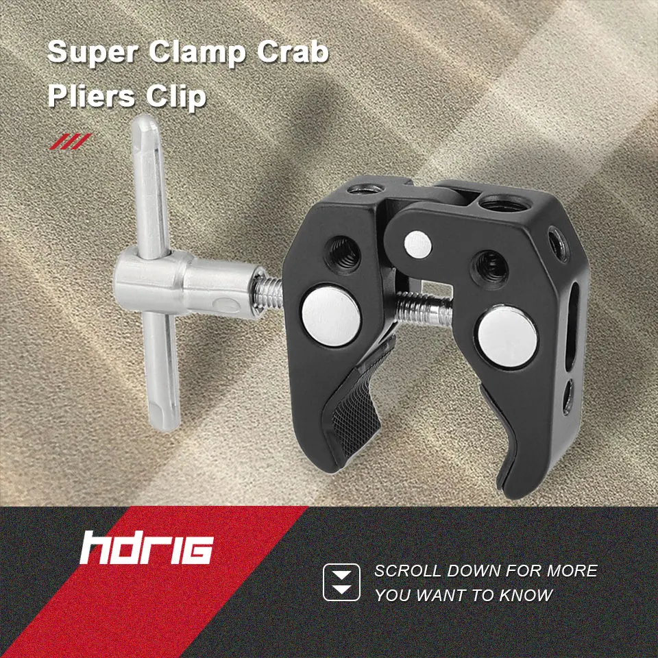 Супер Зажим HDRIG, плоскогубцы-крабы, зажим с резьбой 1/4 и 3/8 и фиксирующими отверстиями для фотоэлементов/зонтов/крючков/полок