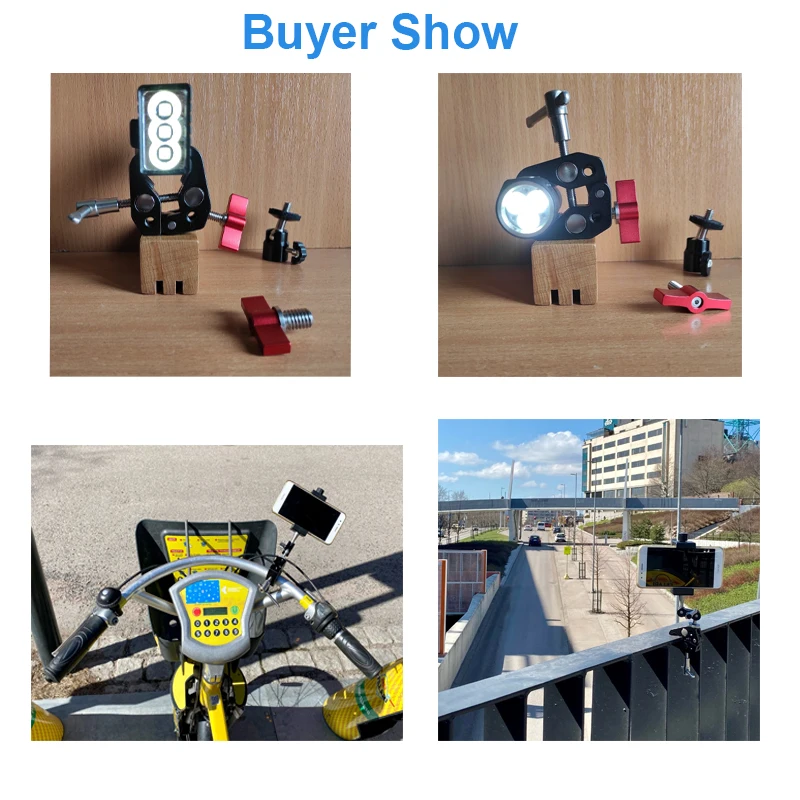 Многофункциональный Монтажный кронштейн поставляется с многофункциональной мини-шаровой головкой и крабом Super Clamp, его можно быстро и легко установить на опорный объект, такой как камеры, фонари, зонты, крючки, полки, перекладины, даже другие супер зажимы. Он также прикрепляет аксессуары через резьбовое отверстие 1/4 дюйма, такие как ЖК-монитор, Шарнирный рычаг, зажим стержня, фонарик, видеолампа и т. Д. Краб с супер-зажимом открывается максимум на 55 мм и минимум на 10 мм. Он поставляется с 5 резьбовыми отверстиями 1/4 "-20 (на 2 больше, чем у других зажимов) и 1 резьбовым отверстием 3/8"-16, поэтому его можно установить под несколькими углами и закрепить больше аксессуаров.