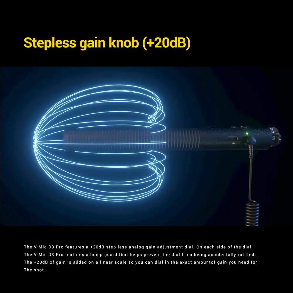 V-Mic D3 Pro-это все, что вы хотите от микрофона на камере, и некоторые вещи, которые вы не знали, что хотите. Авторегулируемый выход Smart Universal 3,5 мм TRRS адаптируется к любому типу микрофонных входов 3,5 мм TS, TRS или TRRS, к которым вы его подключаете.